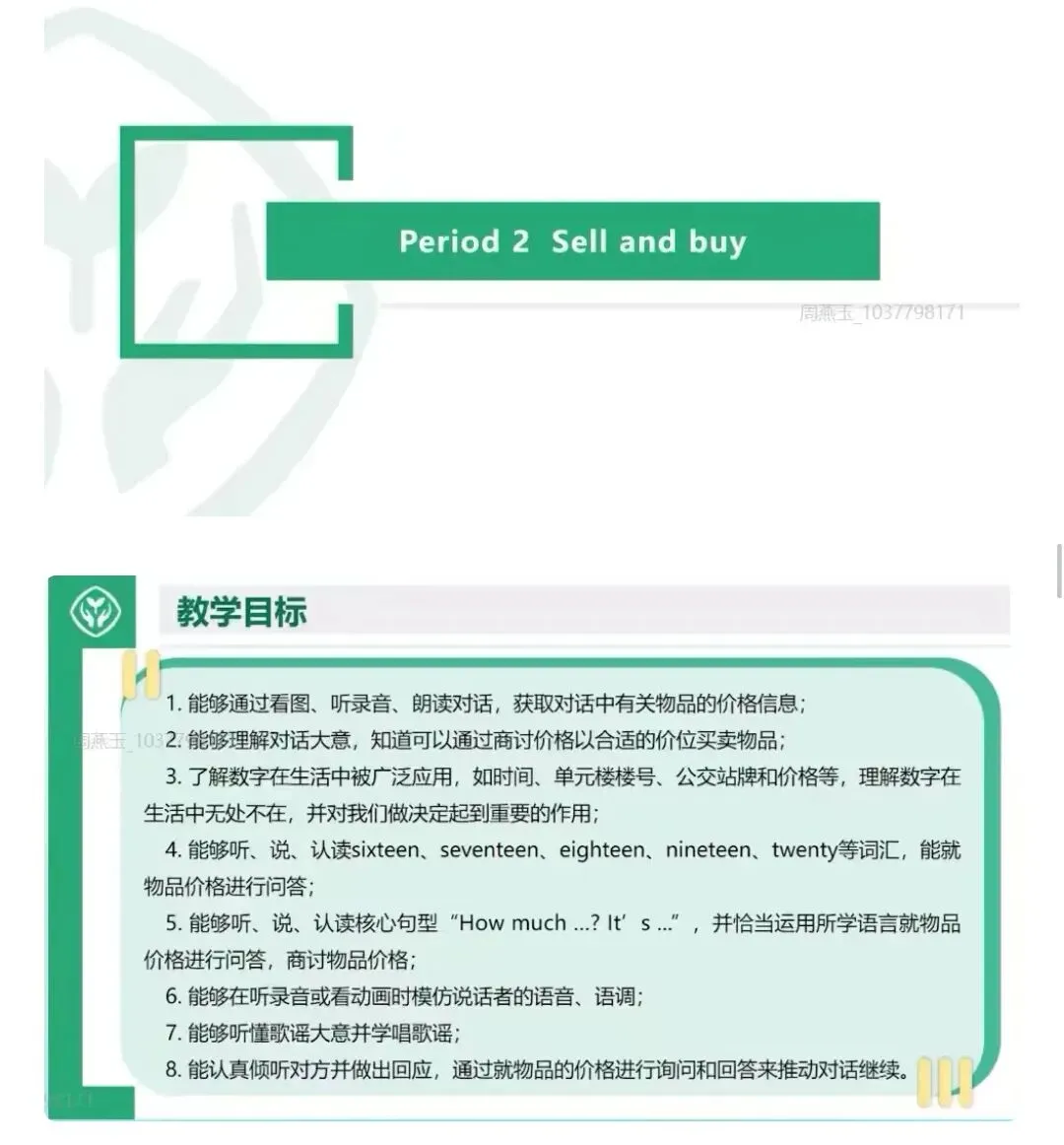 Period 2: Sell and buy (买卖):学习询问价格“How much...?”,进行买卖对话,商讨价格