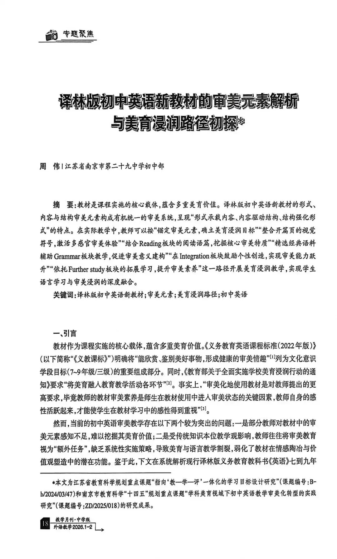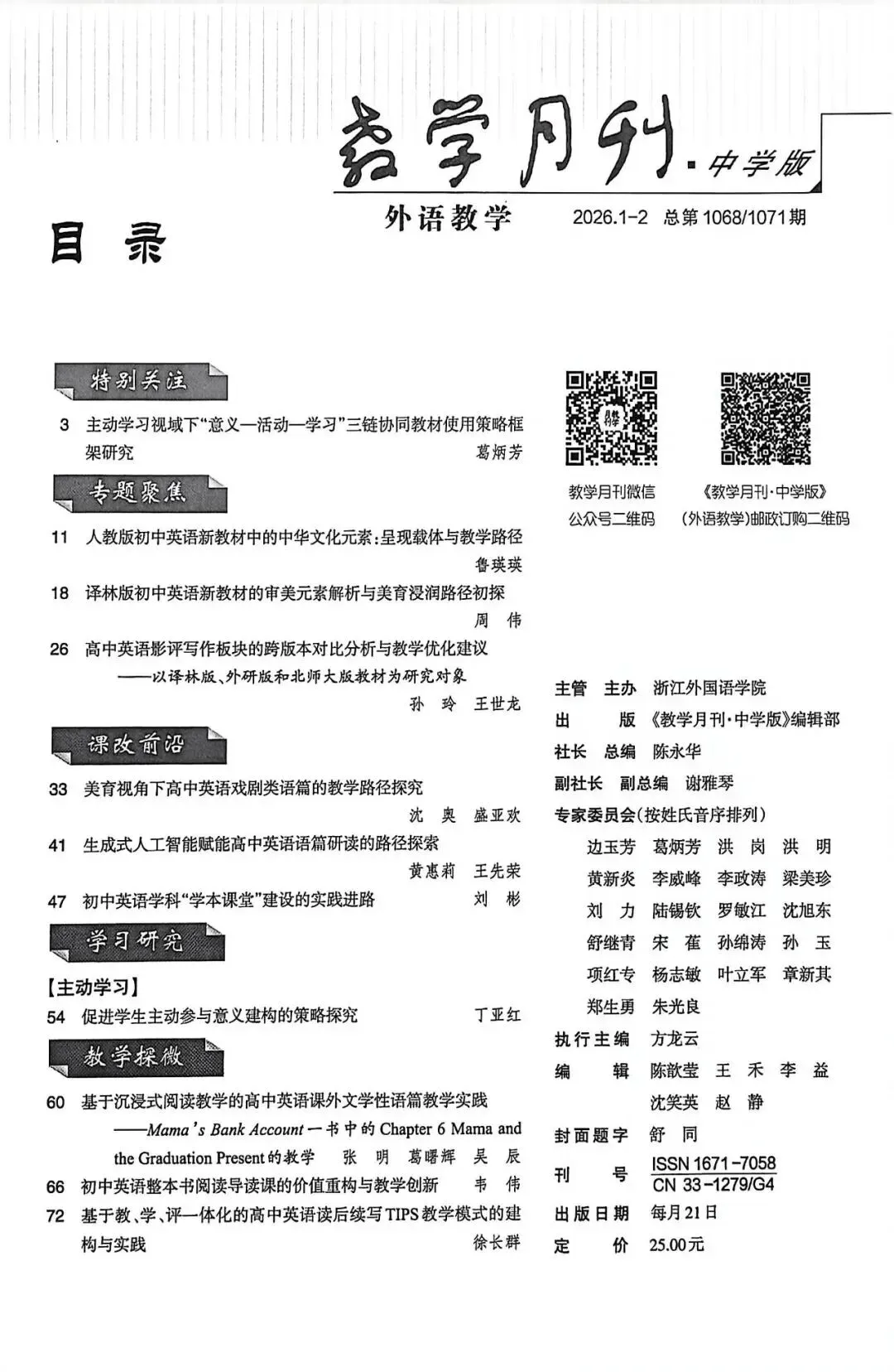 本文刊发于《教学月刊·中学版》(外语教学)2026年第1/2期