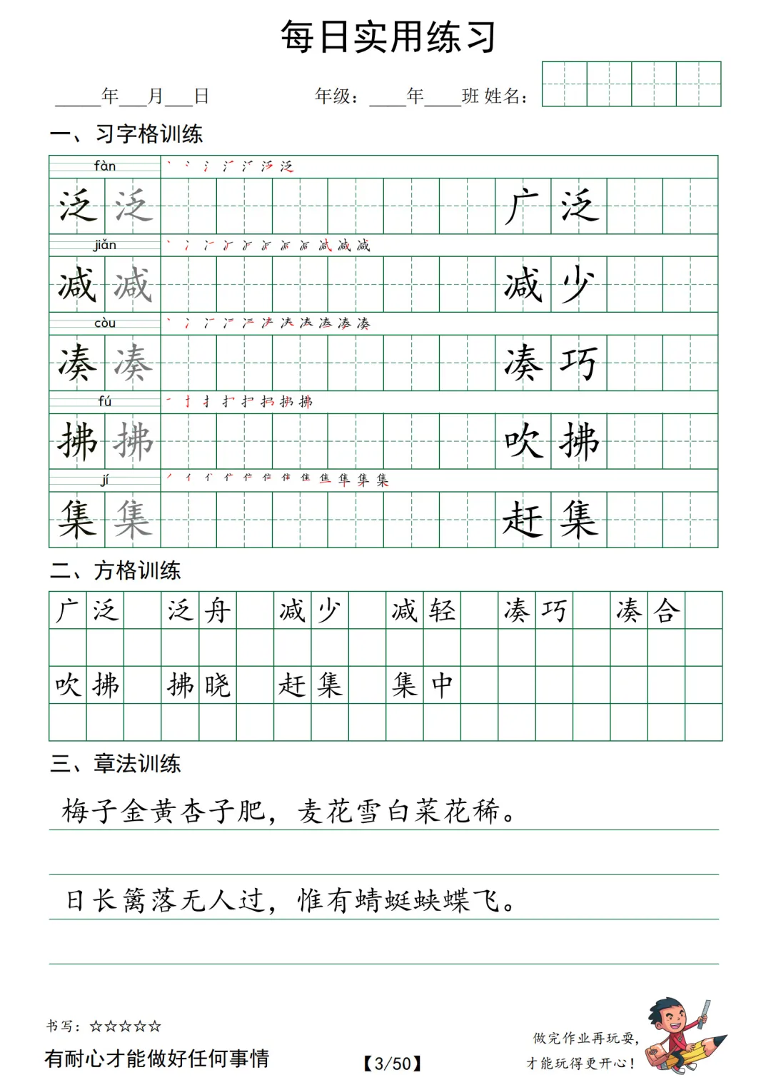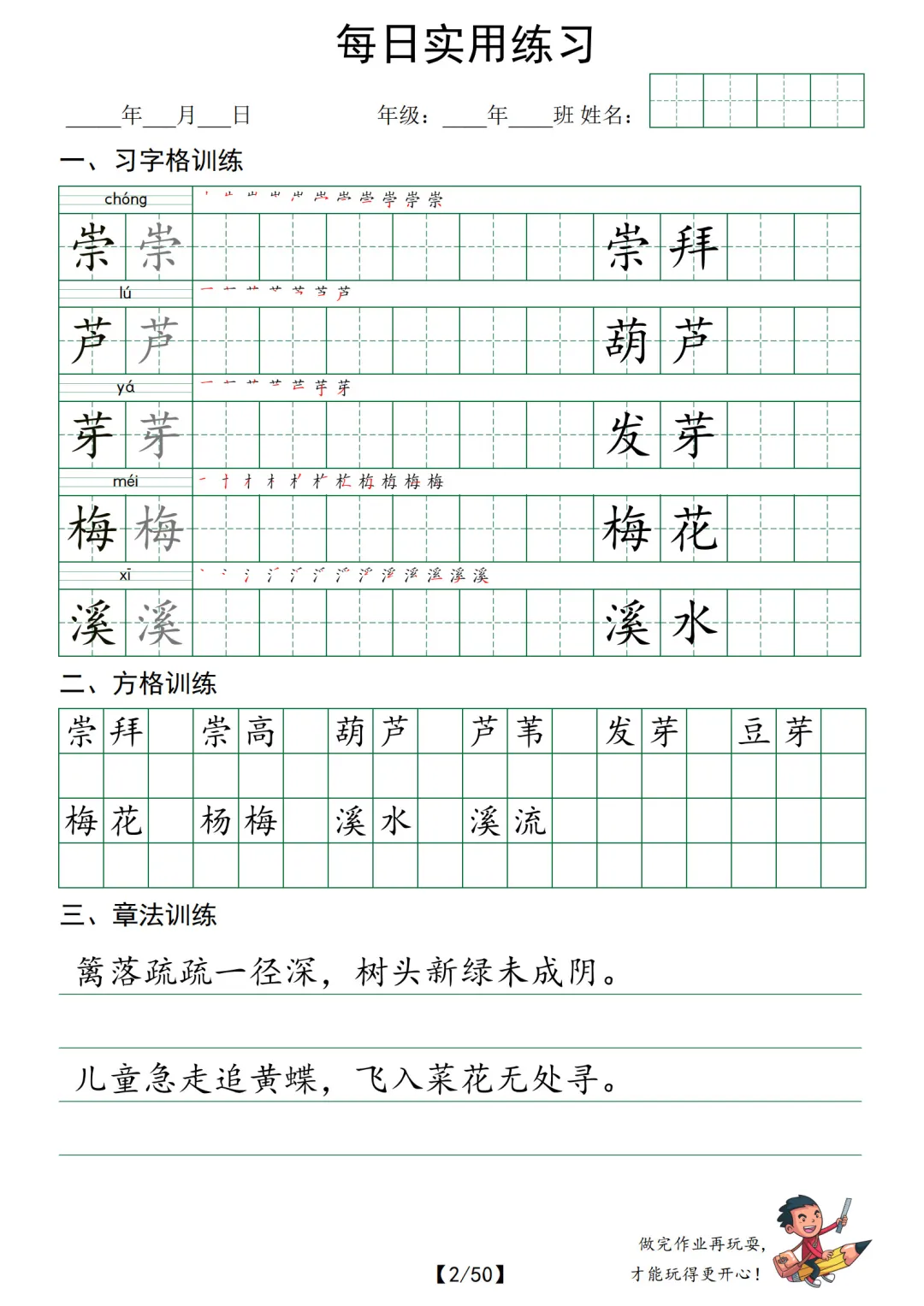 2026年春小学三年级下册语文课本同步生字词使用练习习字格+方格+章法练习+字帖电子版可打印#教辅#育儿#教育#字帖#练字#寒假预习