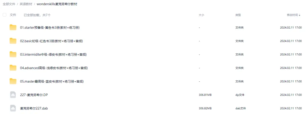 ▫️ 全套教材:Starter到Master共5级,每级3本课本+3本练习册(含答案);▫️ 配套音频:课文朗读+听力训练,支持倍速播放;▫️ 学习指南:分龄推荐表(如3-6岁选Starter,小学中年级选Basic)+ 阅读技巧思维导图。