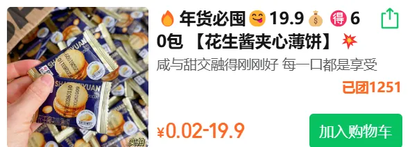 🔥年货必囤😋19.9💰🉐60包 【花生酱夹心薄饼】💥 1.5mm薄的薯香小饼