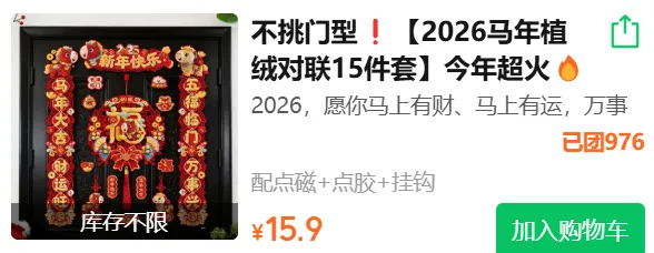 不挑门型❗️15.9元💰到手【2026马年植绒对联15件套】今年超火🔥仿5D立体小马,生动又可爱🐎年味瞬间拉满啦!