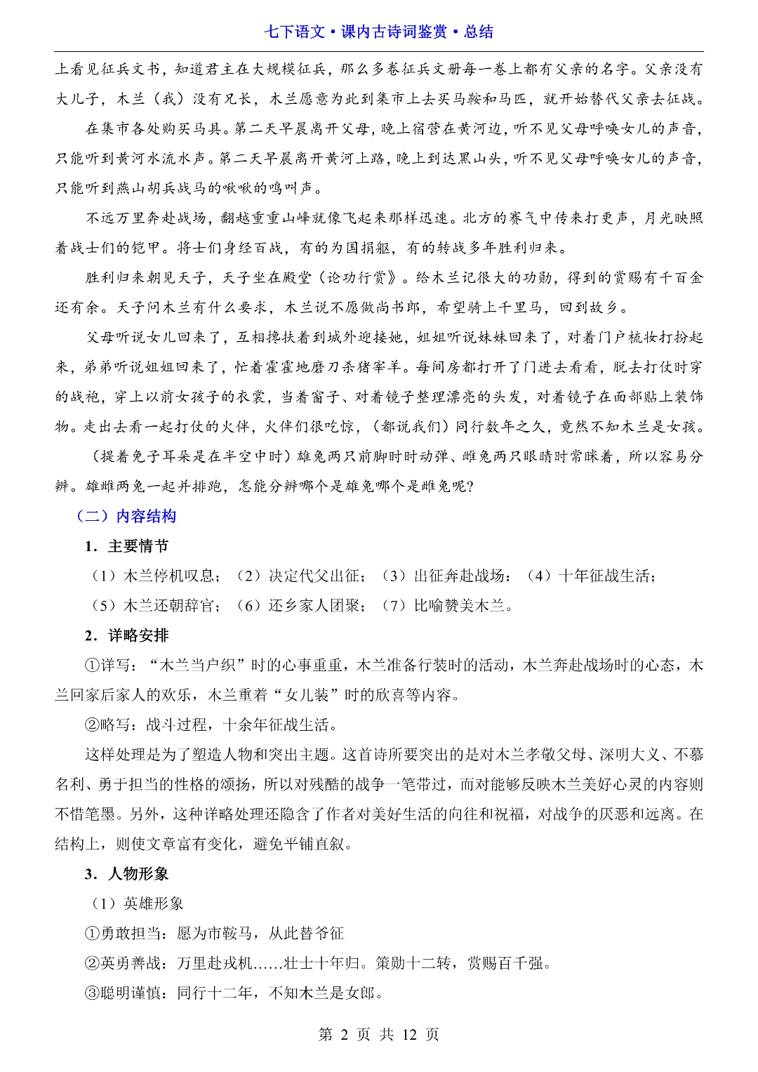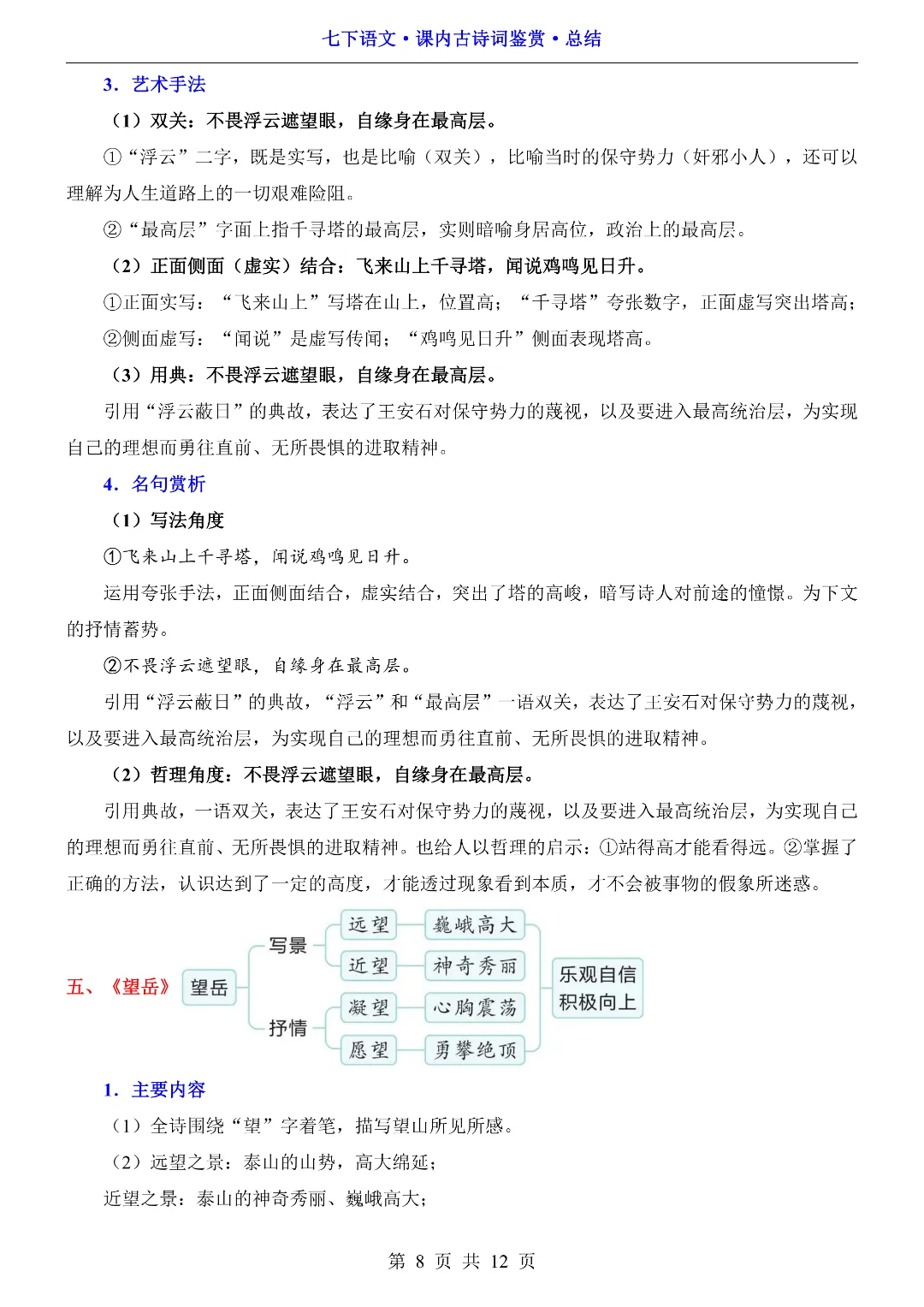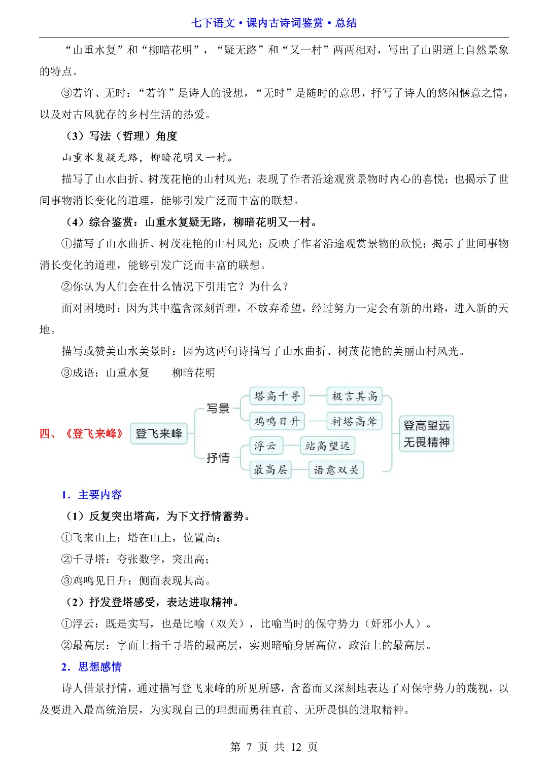 🌟今日给大家分享的:26年春初中七年级下册语文《同步课本古诗词鉴赏总结》电子版可打印