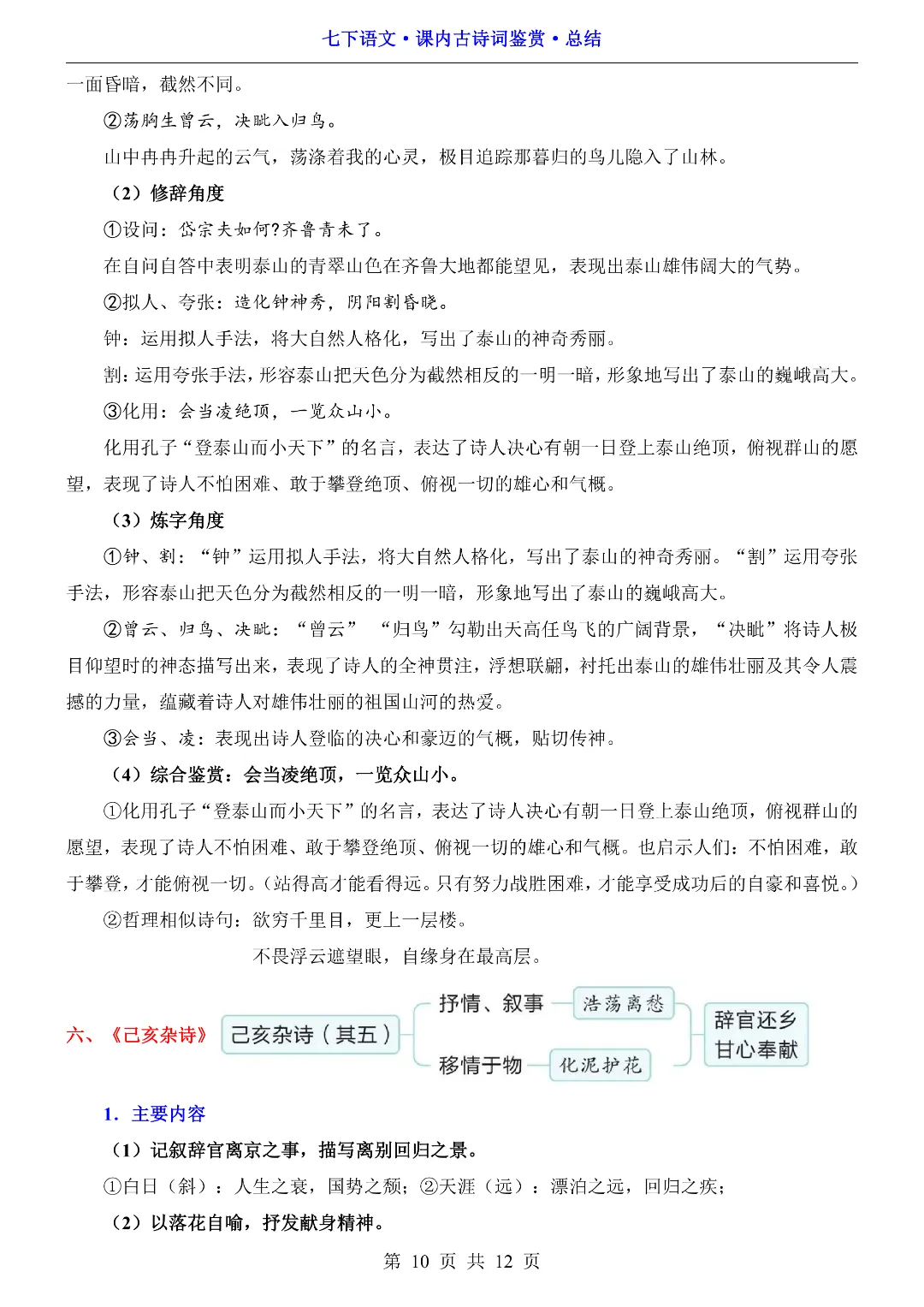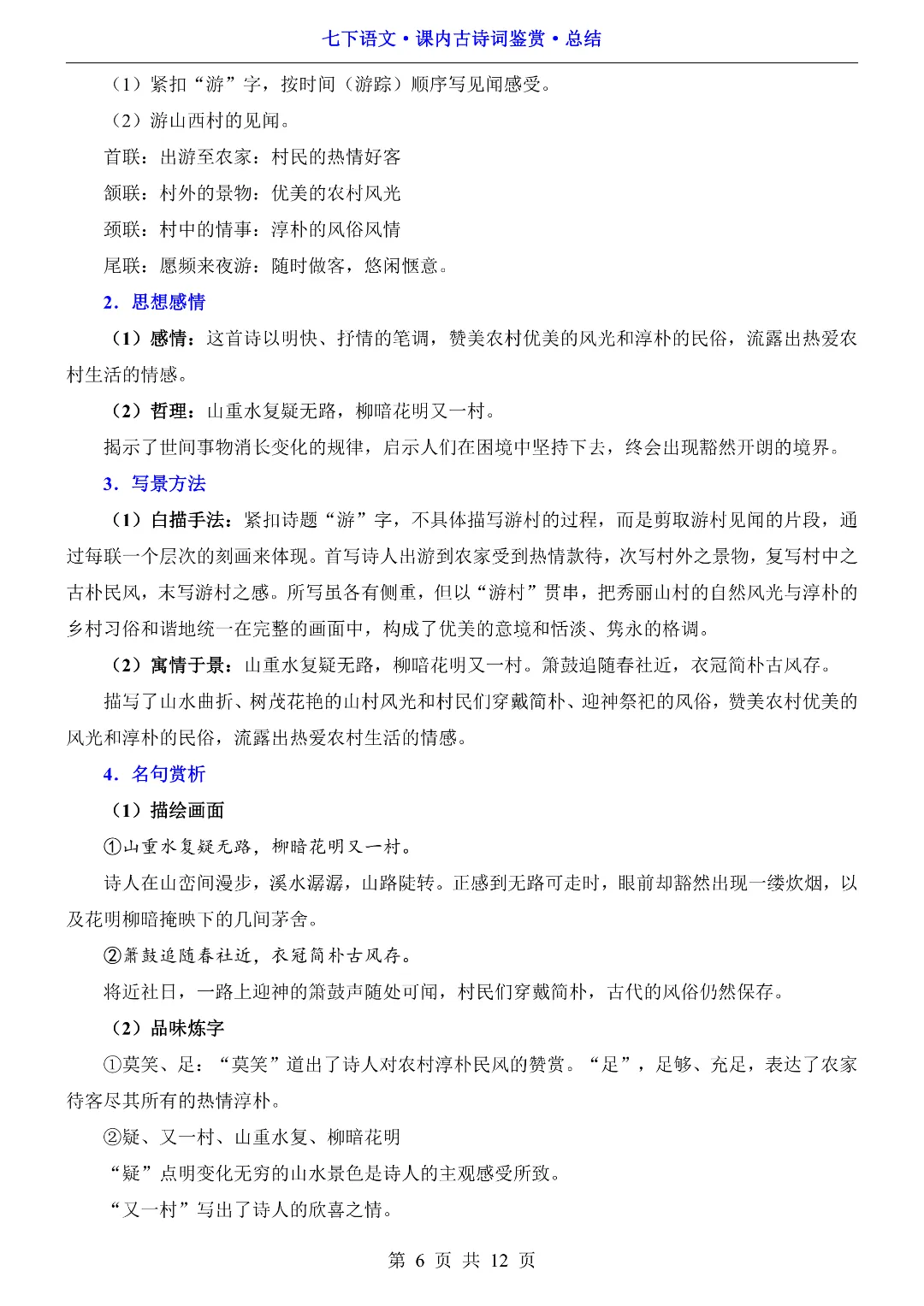 26年春初中七年级下册语文《同步课本古诗词鉴赏总结》电子版可打印