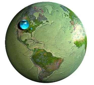 如图4-1所示,若将①地球上的水,②沼泽、河流、湖泊和地下水中的液态淡水,③河流和湖泊中的淡水三者分别汇集起来,只不过形成三个小水珠。这三个水珠相对地球来说并不太大,直径分别约为1384千米、273千米、56千米。