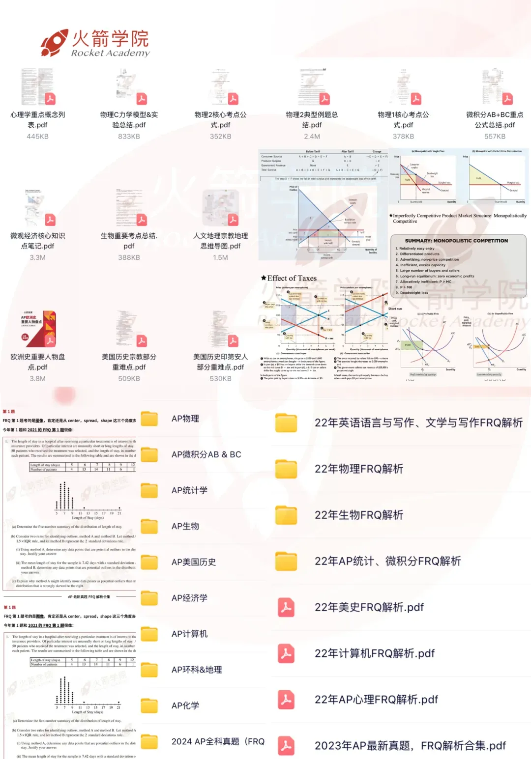 为了帮助大家更好备考,小火箭特意准备了【AP冲5资料包】,里面不仅包含AP各科最新考纲,还有热门科目的核心考点笔记、历年真题以及官方出品的FRQ、MCQ经典例题讲解+练习!📚