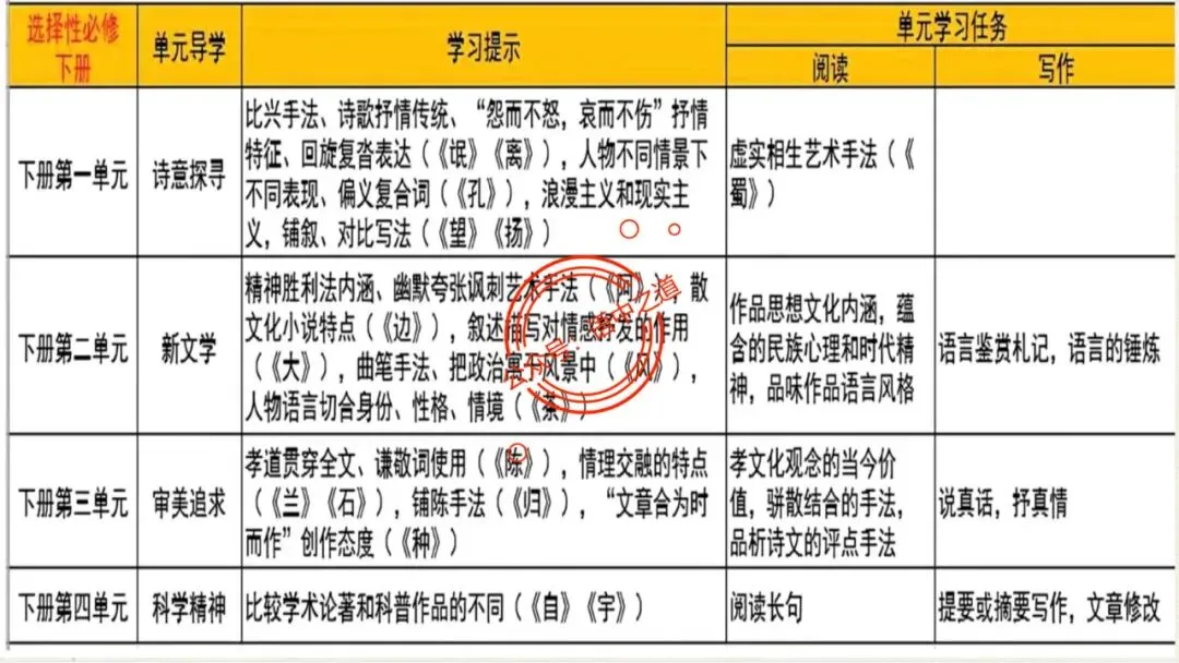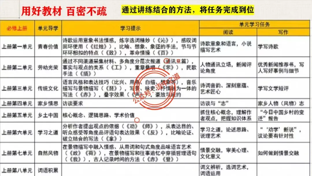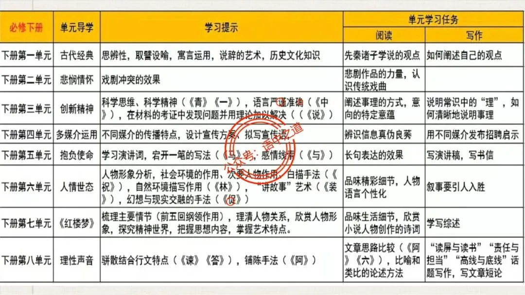 高中语文统编教材【全5册】核心知识表格梳理,附近2020-2025年高考【教考衔接全题型】梳理