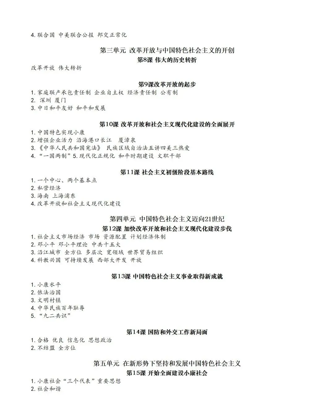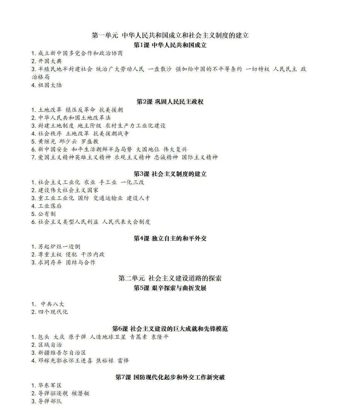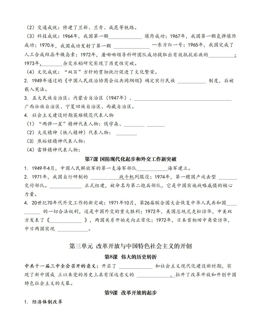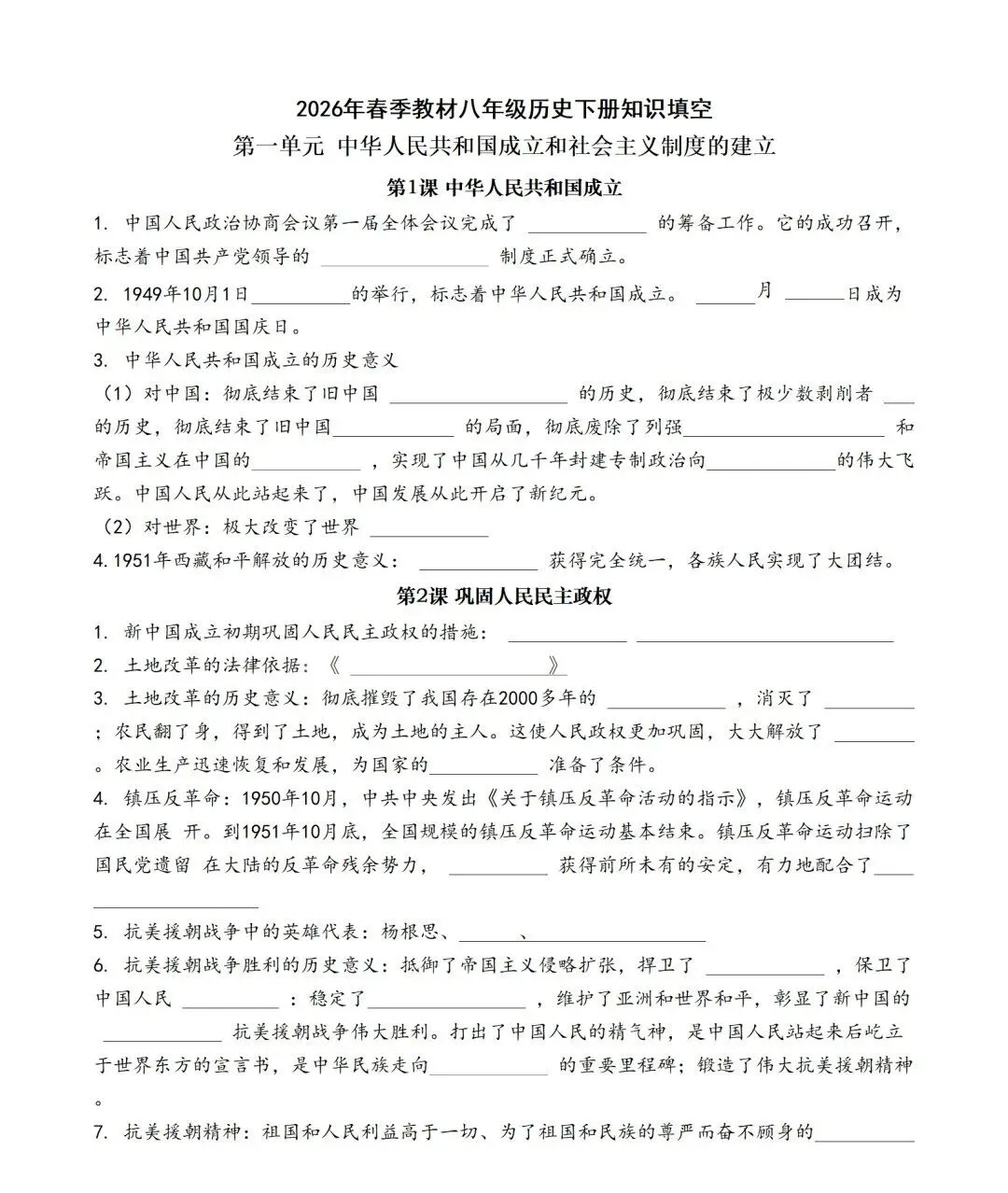 >初中历史 | 2026年春新教材八年级历史下册重点知识填空,寒假预习必备!