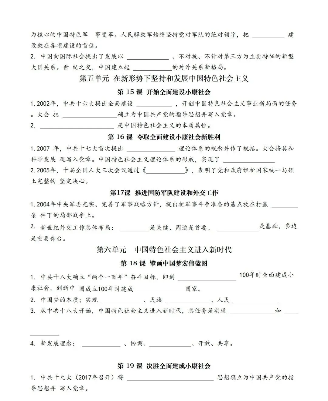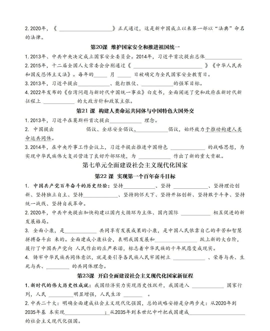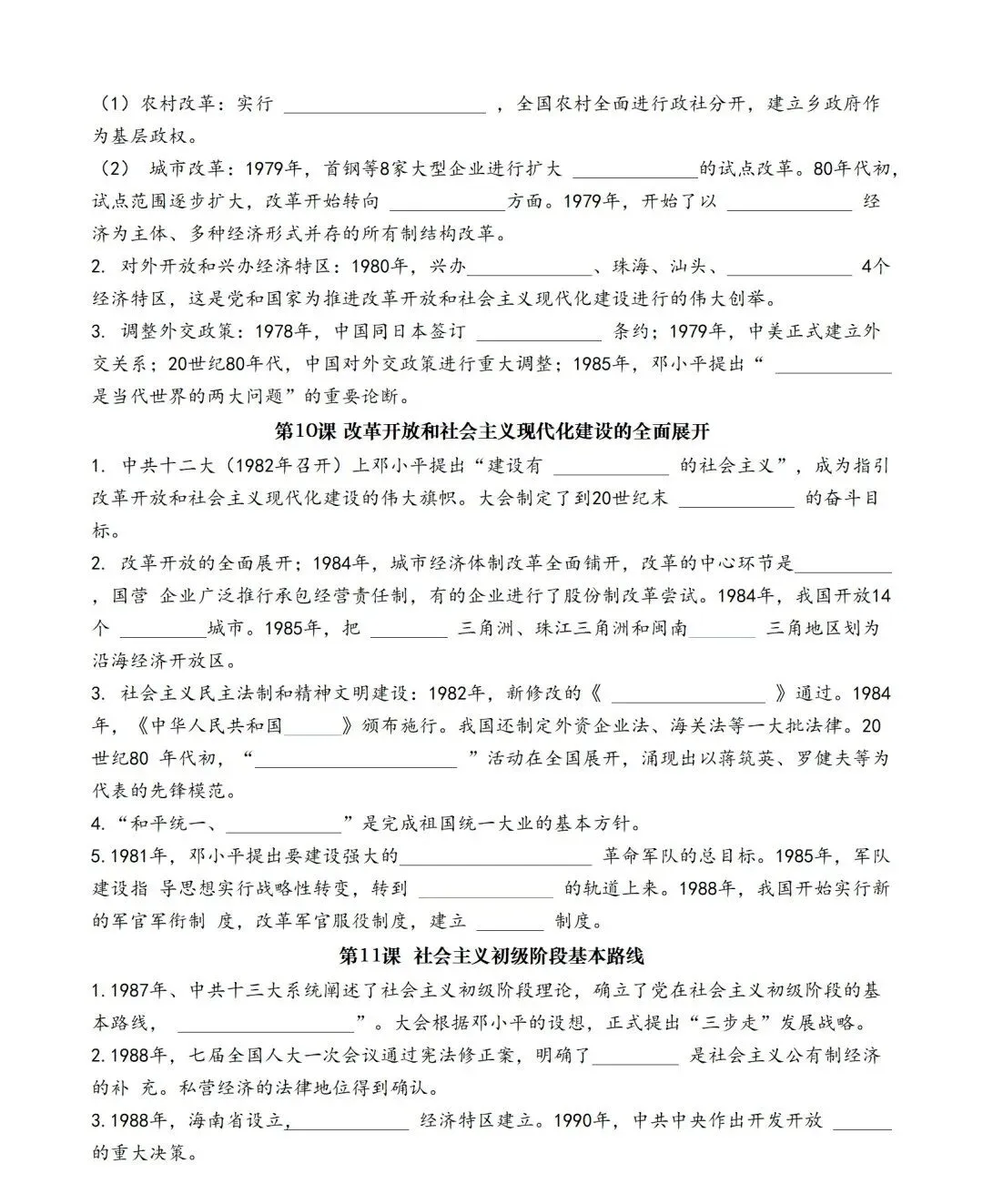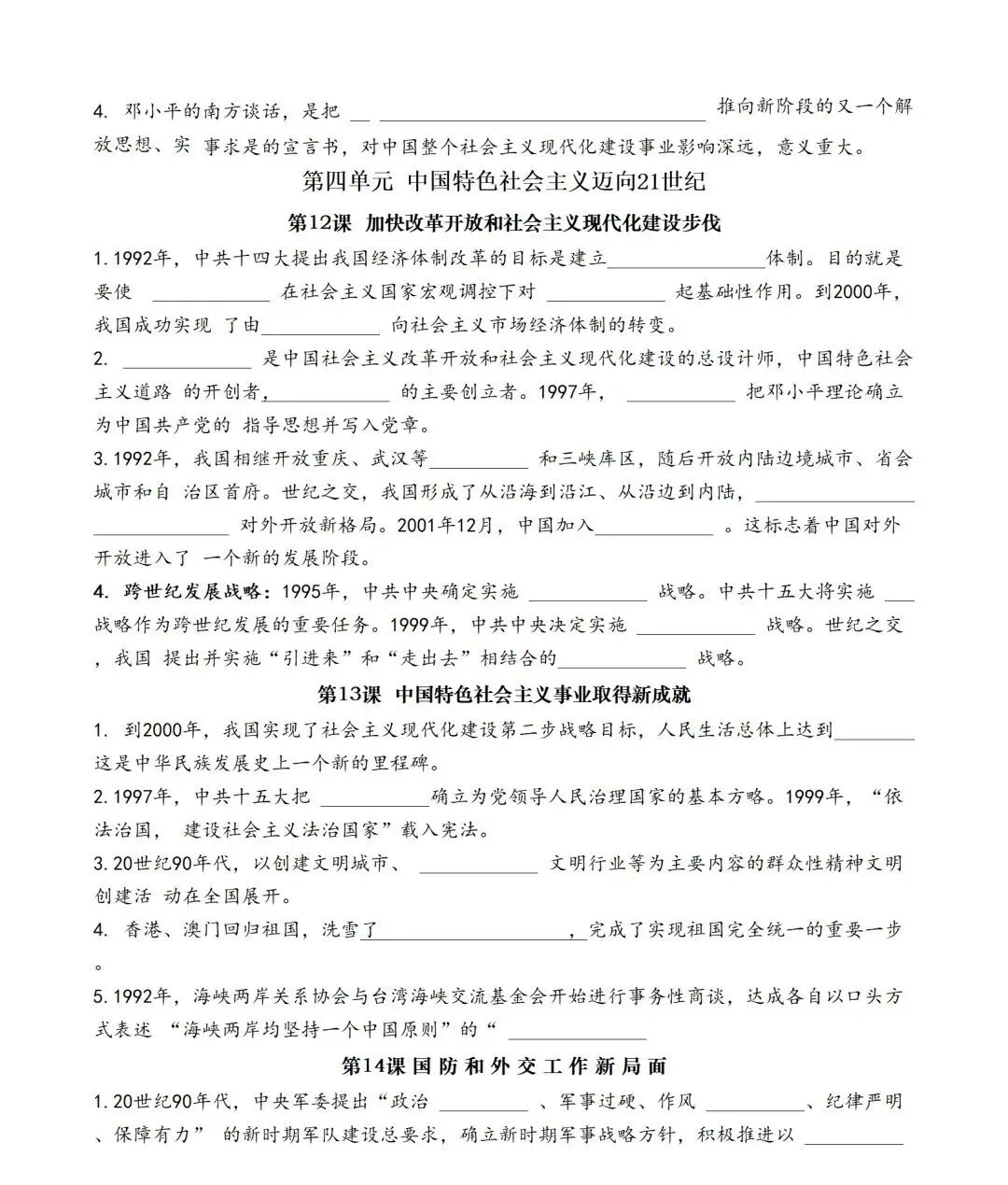 >初中历史 | 2026年春新教材八年级历史下册重点知识填空,寒假预习必备!