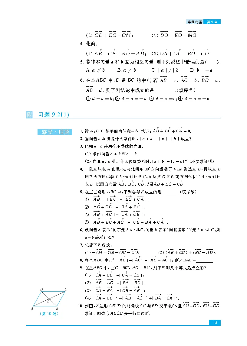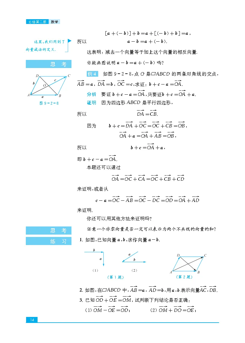 ,然后发送 电子课本 2026春苏教版高中数学必修第一、二册第四单元聚焦核心运算与工具性知识,延续教材“概念递进、运算落地、应用衔接”的编排逻辑,覆盖指数对数体系与平面向量核心,既是夯实高中数学运算基础的关键模块,也是培养数形结合思想、衔接后续函数与几何内容的重要载体。必修第一册第四单元为“指数与对数”,以“运算拓展与互逆关系”为核心主线,知识点层层递进:基础层面完成指数幂的拓展,从初中整数指数幂延伸至分数指数幂,掌握根式与分数指数幂的互化法则(\(a^{\frac{m}{n}}=\sqrt[n]{a^m}\),\(a>0\),\(m、n\)为互素正整数),理解负指数幂的本质是倒数运算,能规范完成含分数、负指数幂的代数式化简;进阶层面构建实数指数幂的运算体系,掌握指数幂的四则运算律,通过计算器探索无理数指数幂的近似值,建立对实数指数幂的直观认知。同时核心突破对数的定义与应用,理解对数作为指数逆运算的本质(若\(a^b=N\),则\(b=\log_aN\),\(a>0\)且\(a≠1\),\(N>0\)),掌握对数的基本性质、运算法则及换底公式,能实现指数与对数的灵活转化,解决简单的指数方程、对数方程,结合实际案例感知指数对数在描述增长、衰减问题中的应用价值。必修第二册第四单元为“平面向量”,以“概念建模+运算应用”为核心,知识点兼顾理论与实操:基础层面抽象出向量的概念,区分向量与数量的本质差异,掌握零向量、单位向量、相等向量、共线向量等核心术语,能用有向线段表示向量,理解向量的几何意义。运算层面熟练掌握向量加减法的三角形法则、平行四边形法则,向量数乘的伸缩与反向效应,以及向量数量积的定义式(\(a·b=|a||b|\cosθ\))与坐标计算公式(\(a·b=x_1x_2+y_1y_2\)),明确向量平行、垂直的坐标判定条件。应用层面能运用向量解决简单平面几何问题(证明平行、垂直,求长度、夹角)与物理问题(力的合成与分解、位移计算),理解平面向量基本定理的意义,体会向量作为“数形桥梁”的工具性作用。