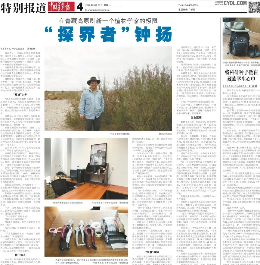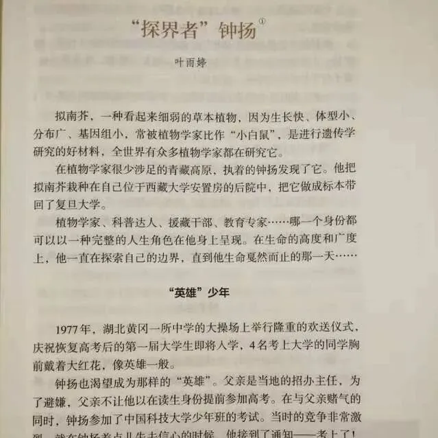 从今年秋季学期开始,全国将逐步开始使用新版普通高中统编教材。在语文课本中,中国青年报记者叶雨婷的稿件《“探界者”钟扬》也编入了课本。