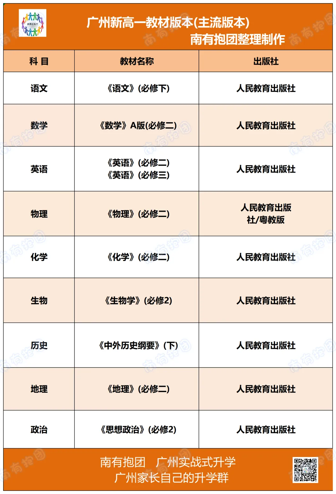 📚 广州高一下教材清单(2026年主流版本)