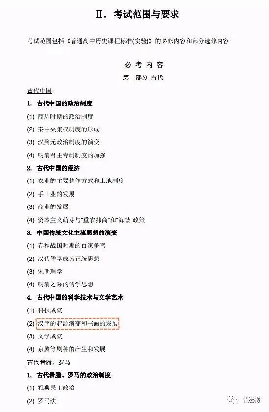 2018年高考历史大纲中