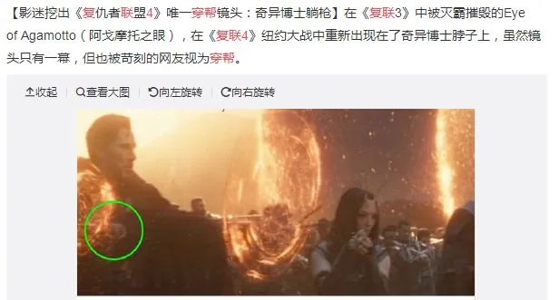 有影迷发现《复联4》的穿帮镜头,但这不是唯一一个,在最终大战中有个镜头,被砍坏的美队盾牌是好的,这里也穿帮了/截图自微博