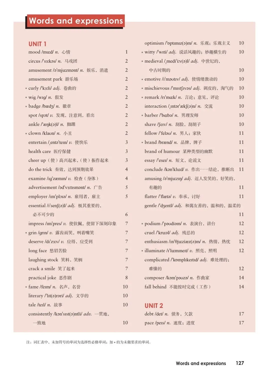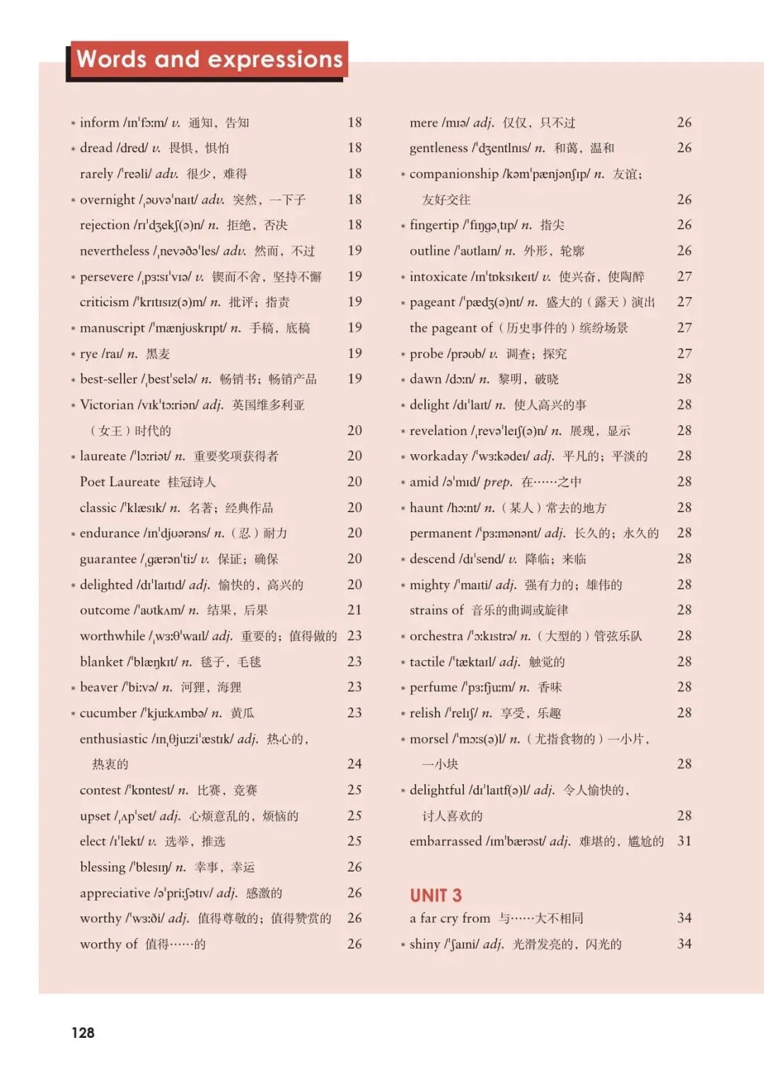人教版高中英语新教材第一册 Unit 3词汇表及录音