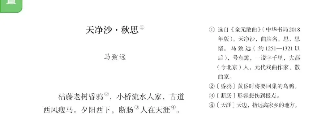 马致远这首小令中,“古道西风瘦马”一句,勾勒出游子漂泊的凄凉图景。夕阳西下,断肠人在天涯,陪伴他的只有那匹瘦马。