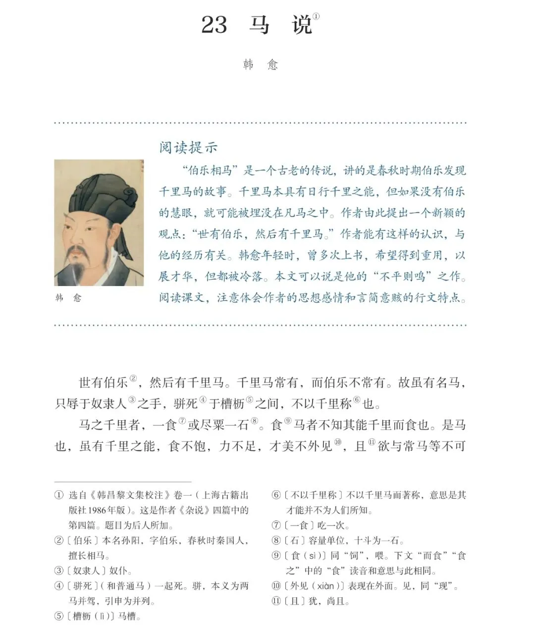 最让人感慨的,当属八年级下册韩愈的《马说》。