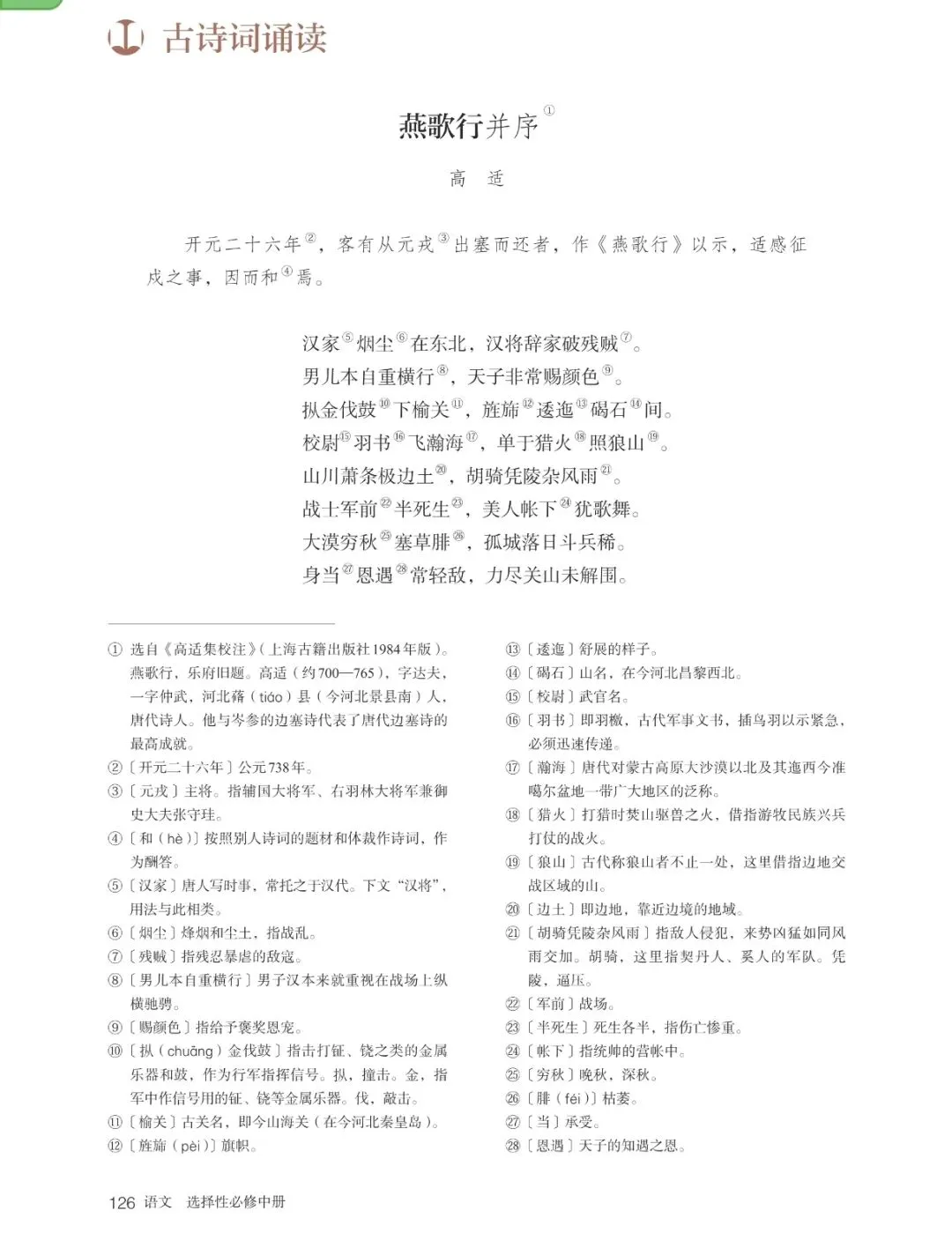 选择性必修中册:《燕歌行》