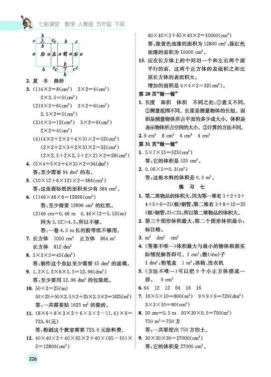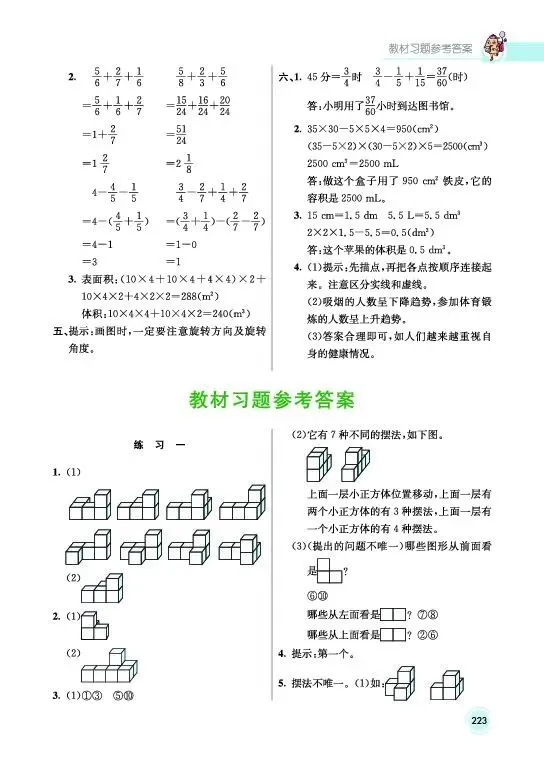 当前位置:首页>小学教材>小学数学《教材习题参考答案》五年级下册(人教版)