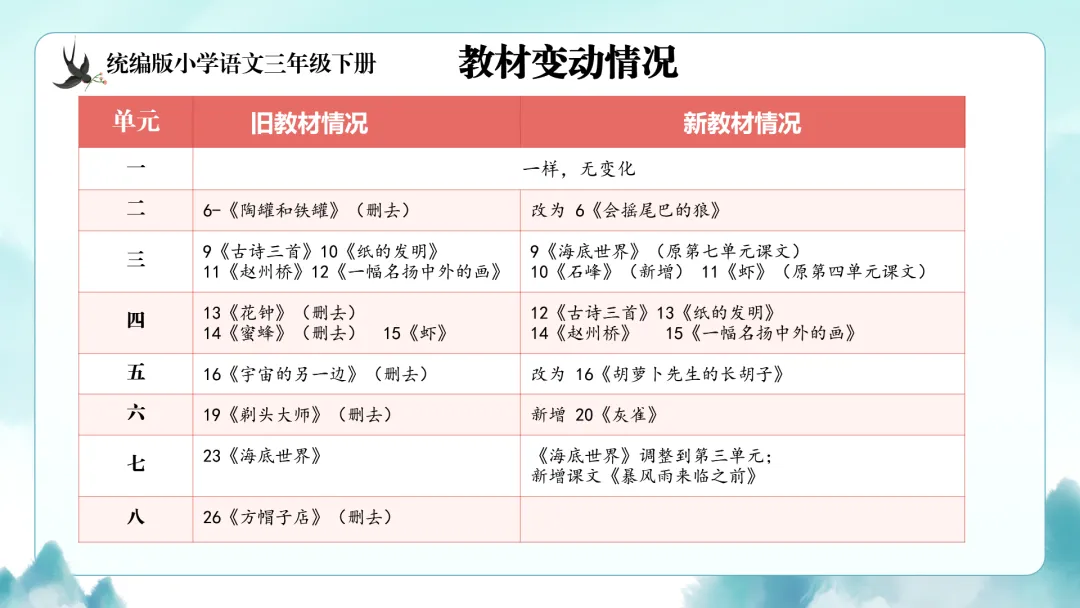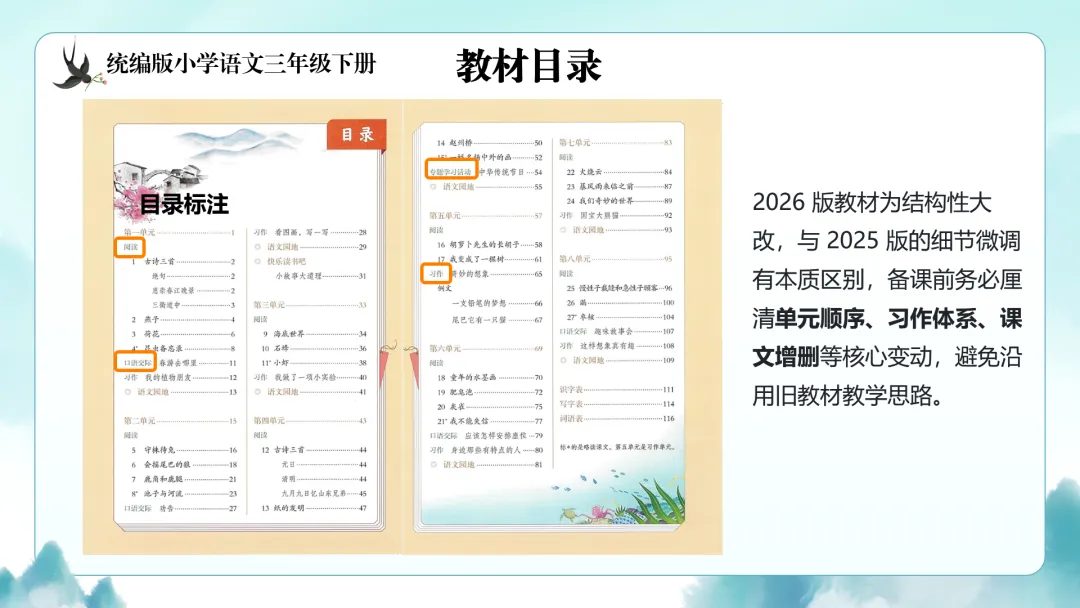 最后,也是大家最关心的部分:和旧版相比,2026春的新教材具体有哪些变动?