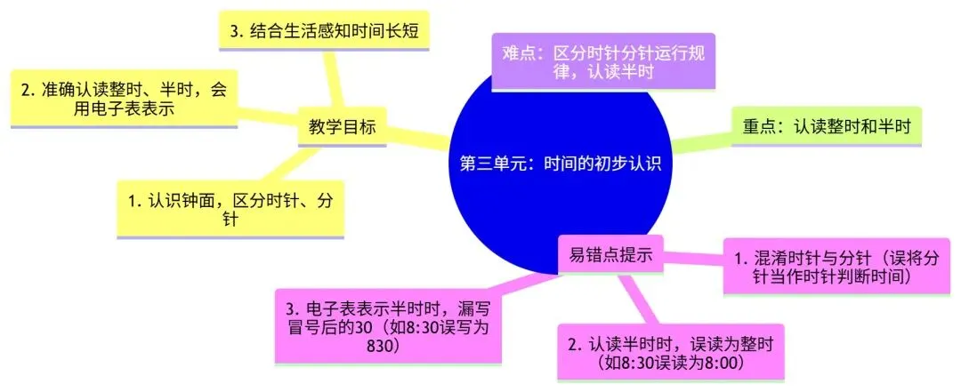 ⚠️ 难点:准确区分时针与分针的运行规律,认读半时。