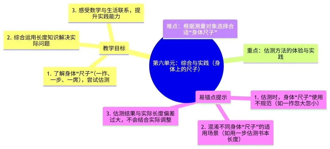 生活联结紧密:时间、长度、人民币、身体尺子等内容均源于生活,提升应用意识。
