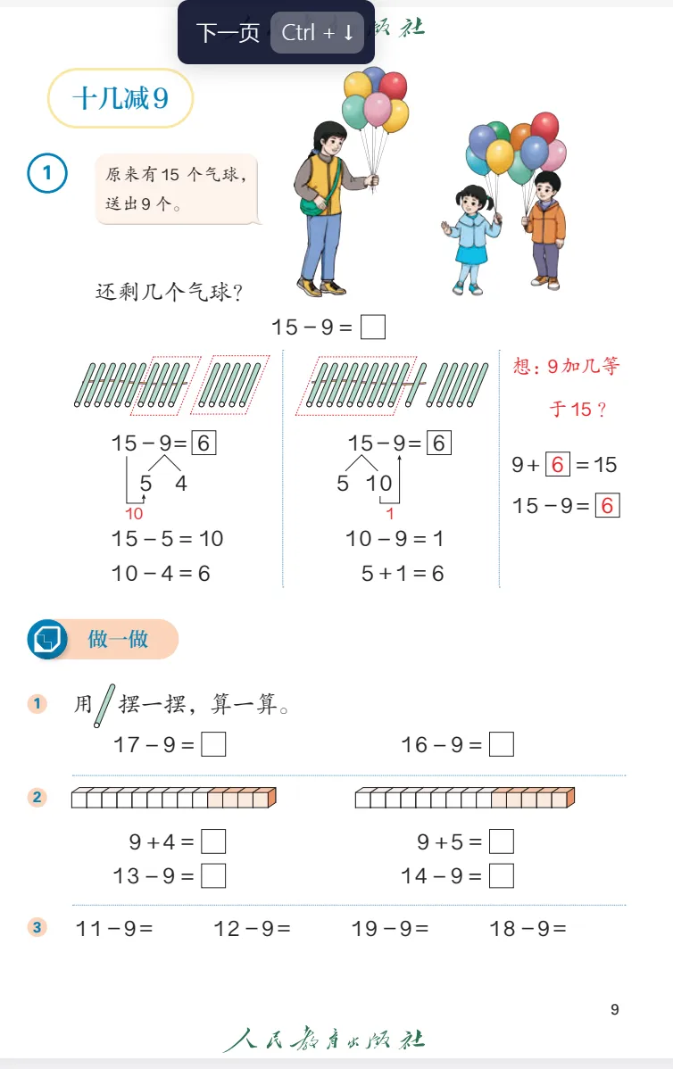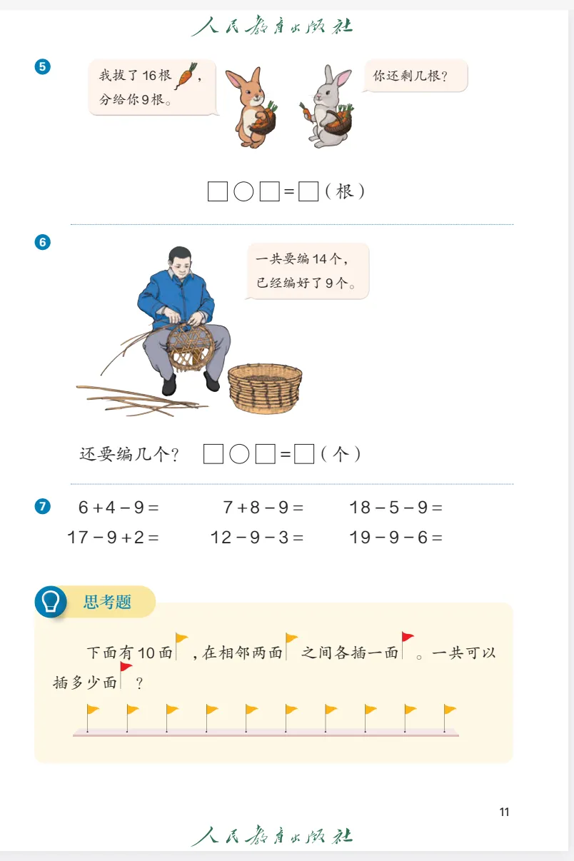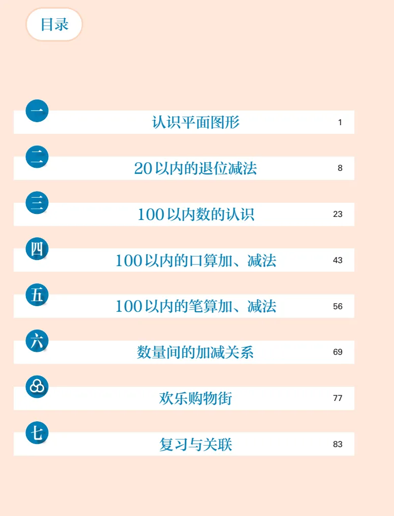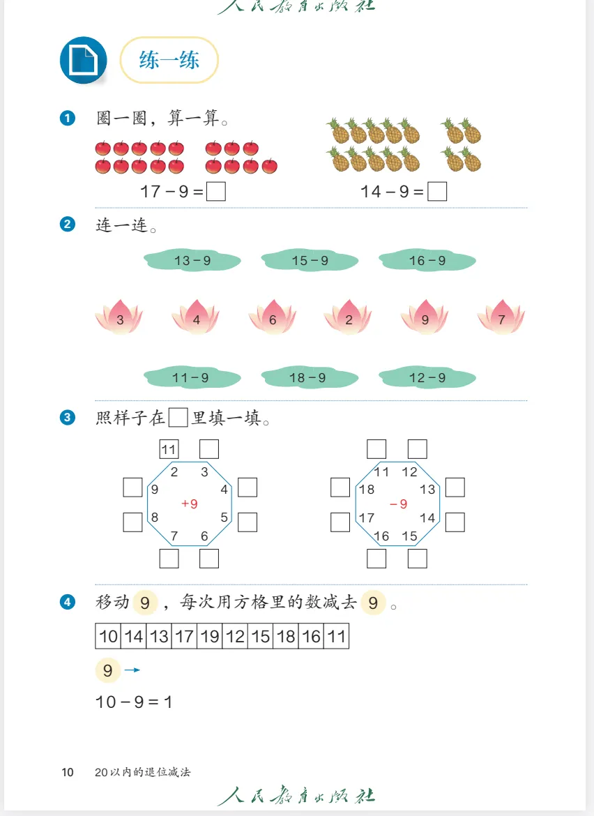 2026春新版小学教材:人教版数学一年级下册电子课本(教材)