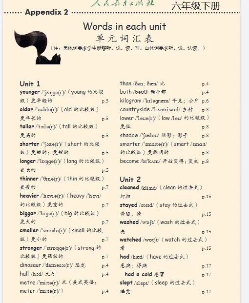 >26春小学英语六年级《 最新教材课后单词表(单词汇总) 》(人教pep版) |可下载打印