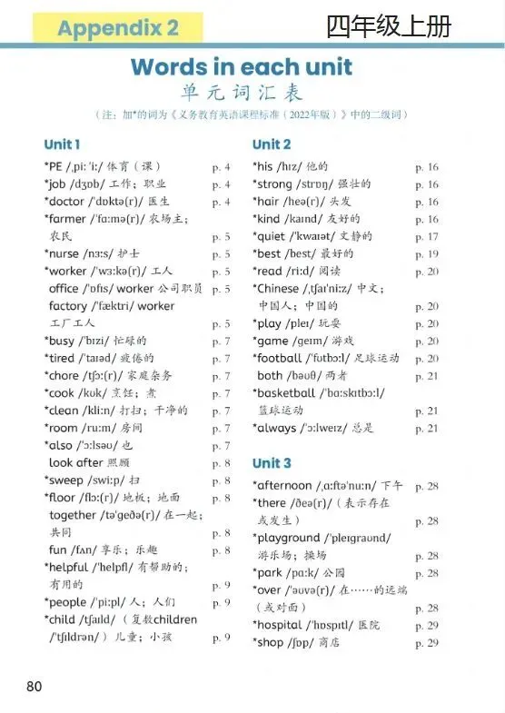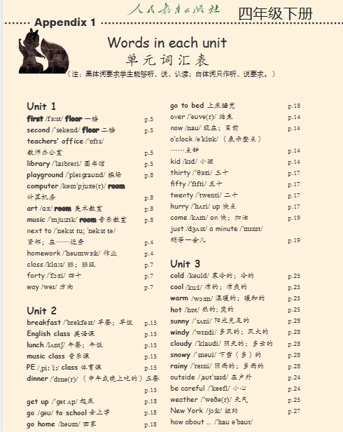 >26春小学英语四年级《 最新教材课后单词表(单词汇总) 》(人教pep版) |可下载打印