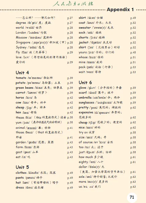 PEP人教版新教材小学英语三下单元知识点过关