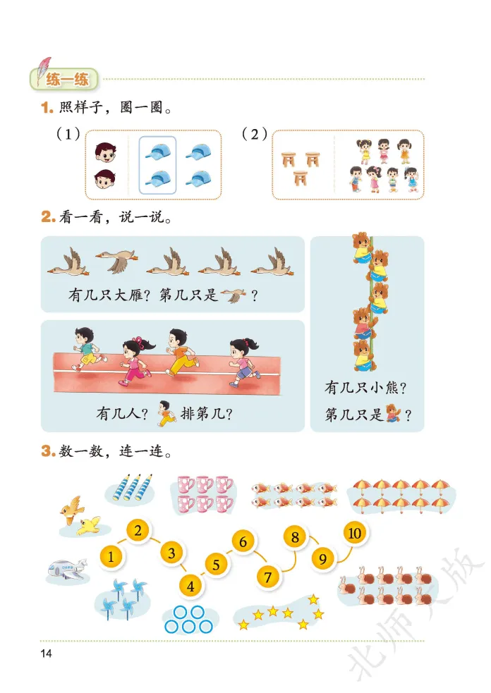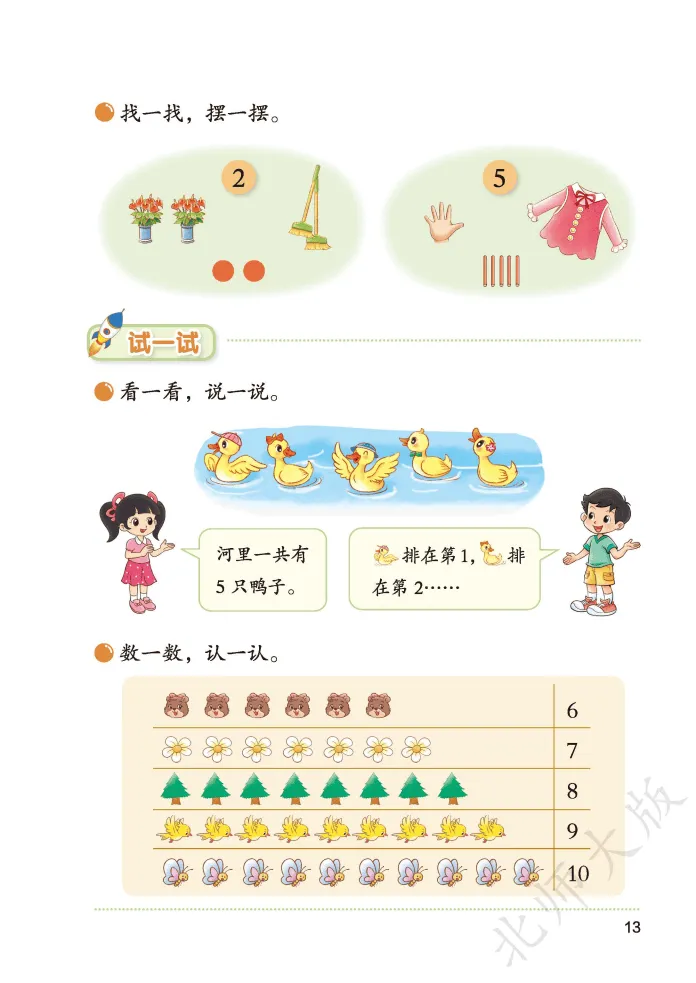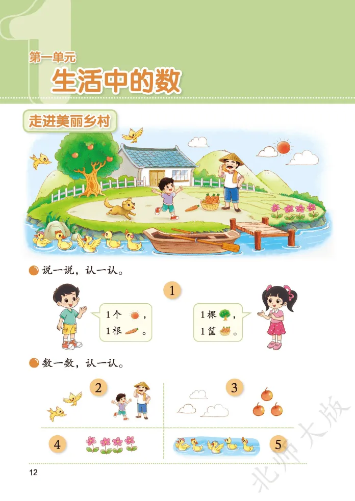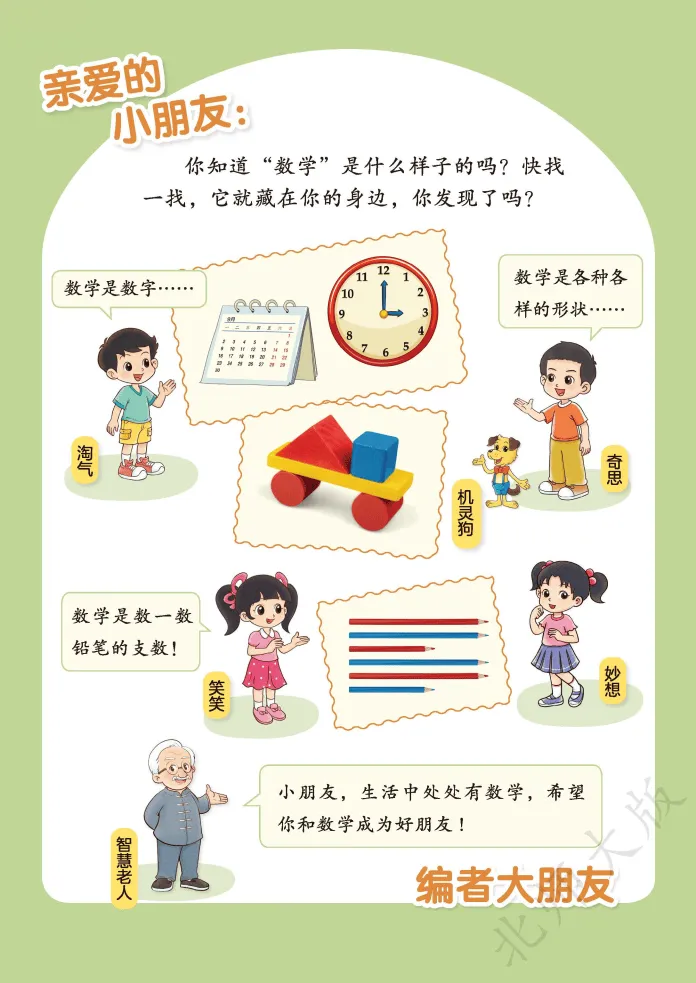 2026 秋北师大版一年级数学上册新教材聚焦10 以内数的认识、大小比较、10 以内加减法、位置与顺序、立体图形、分类、认识钟表,情境贴近校园生活,重数感与直观操作,适配全国北师大版使用地区,适合幼小衔接、课堂同步与家庭预习辅导。