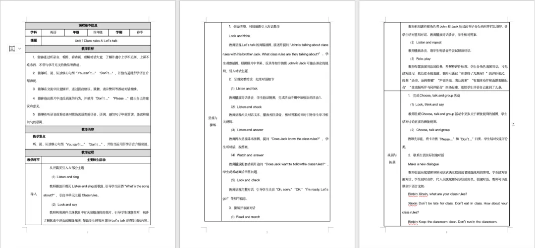 PEP人教版新教材小学英语四下U1-U3教案分享