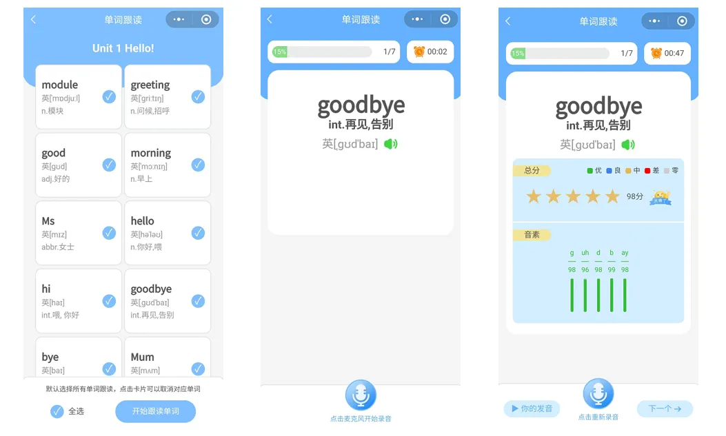 敢于发声是语言习得的重要环节。为了帮助孩子自信地开口练习英语,我们可以借助英语同步学助手小程序的读单词测评和读课文测评功能。这些工具能够对孩子的单词和课文发音进行精准评估,智能评测系统迅速提供反馈,即时发现并帮助孩子修正发音上的不足,从而提升他们的英语口语能力。