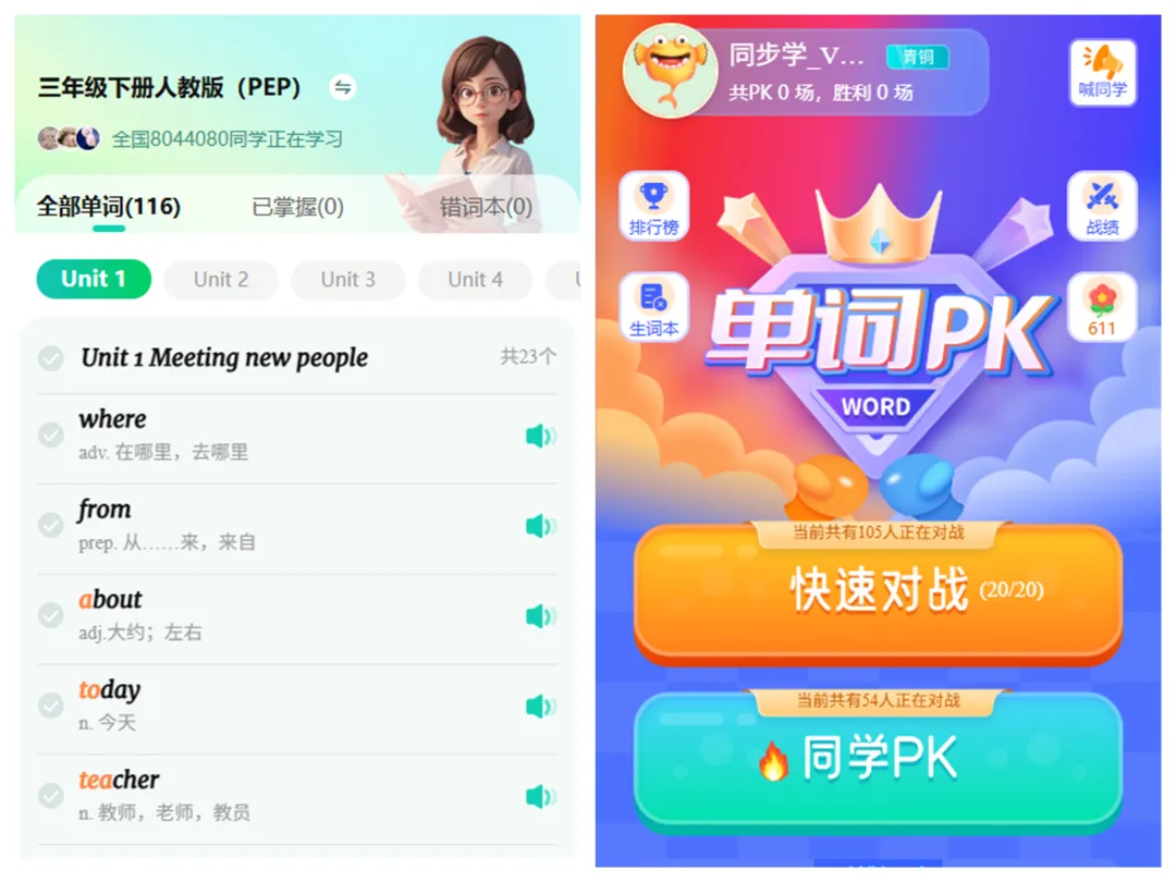 针对新教材词汇量暴增的痛点,小学英语点读小程序用科学方法帮孩子高效记单词。
