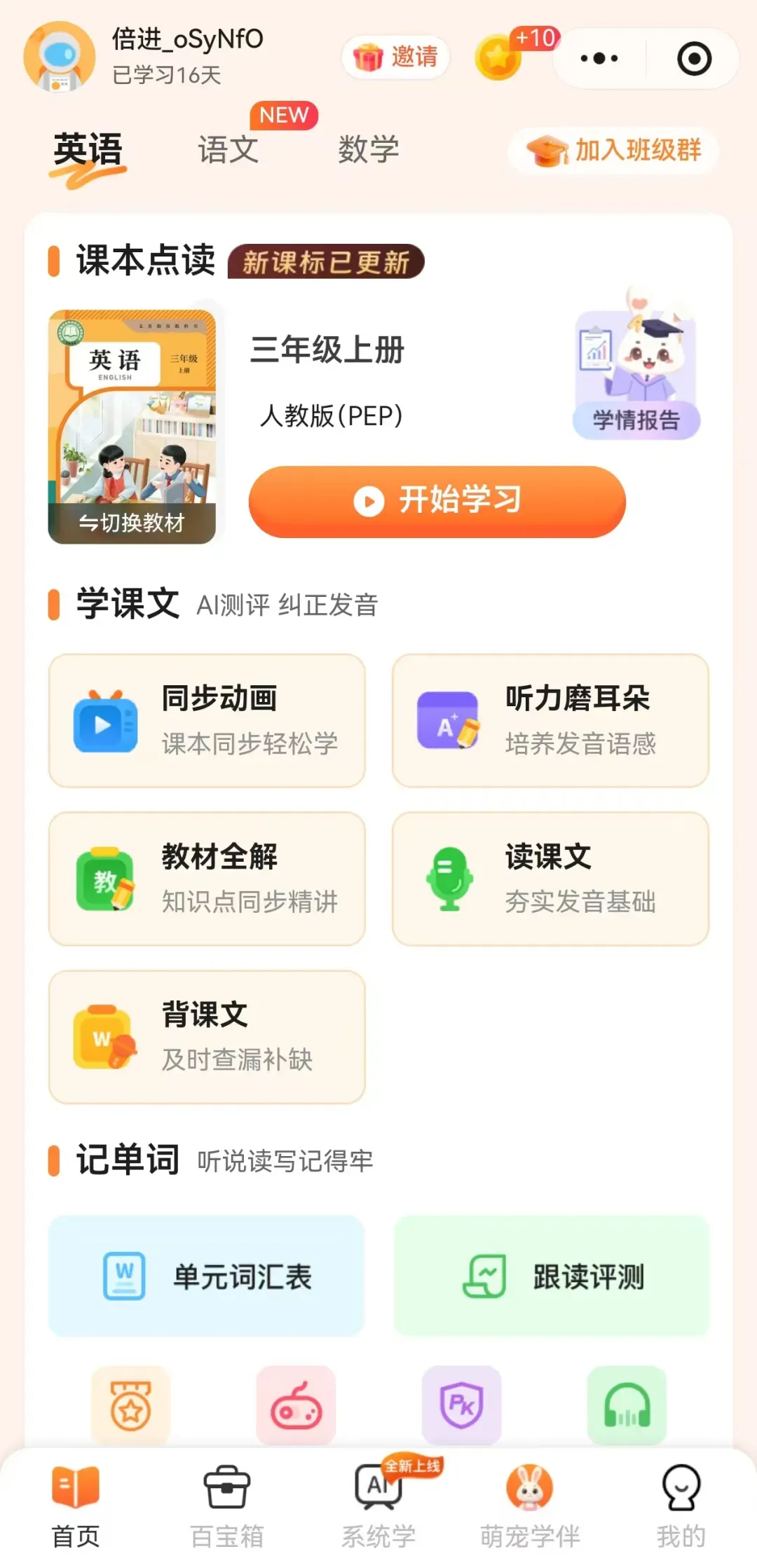 新学期将至,2026 春中小学英语新教材的变化让不少家长犯了愁:词汇量大幅增加、听说训练成常态、阅读写作难度翻倍,传统学习方式根本跟不上节奏!自己发音不准不敢教,报班又怕加重孩子负担,预习复习找不到靠谱工具…… 别慌!专为新课标打造的倍进英语点读工具小程序重磅上线,同步新教材、智能教学习、轻松不费妈,每天 10 分钟,帮孩子吃透新教材,告别英语学习焦虑!