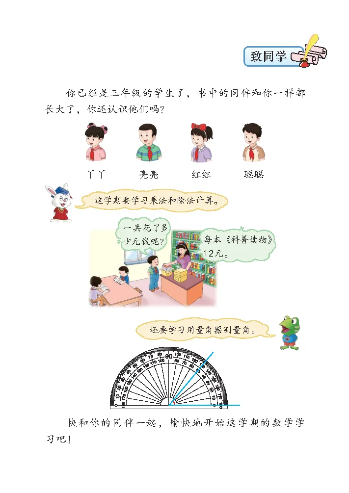 2026 秋冀教版三年级数学上册新教材,遵循基础感知到思维拓展的递进逻辑,聚焦称量物体、倍的认识、多位数乘除一位数、线和角等核心内容,搭配探索乐园拓展模块,夯实量感、运算与几何基础,培养推理意识,是河北及冀教版使用区三年级上学期同步学习、能力进阶的核心教材。