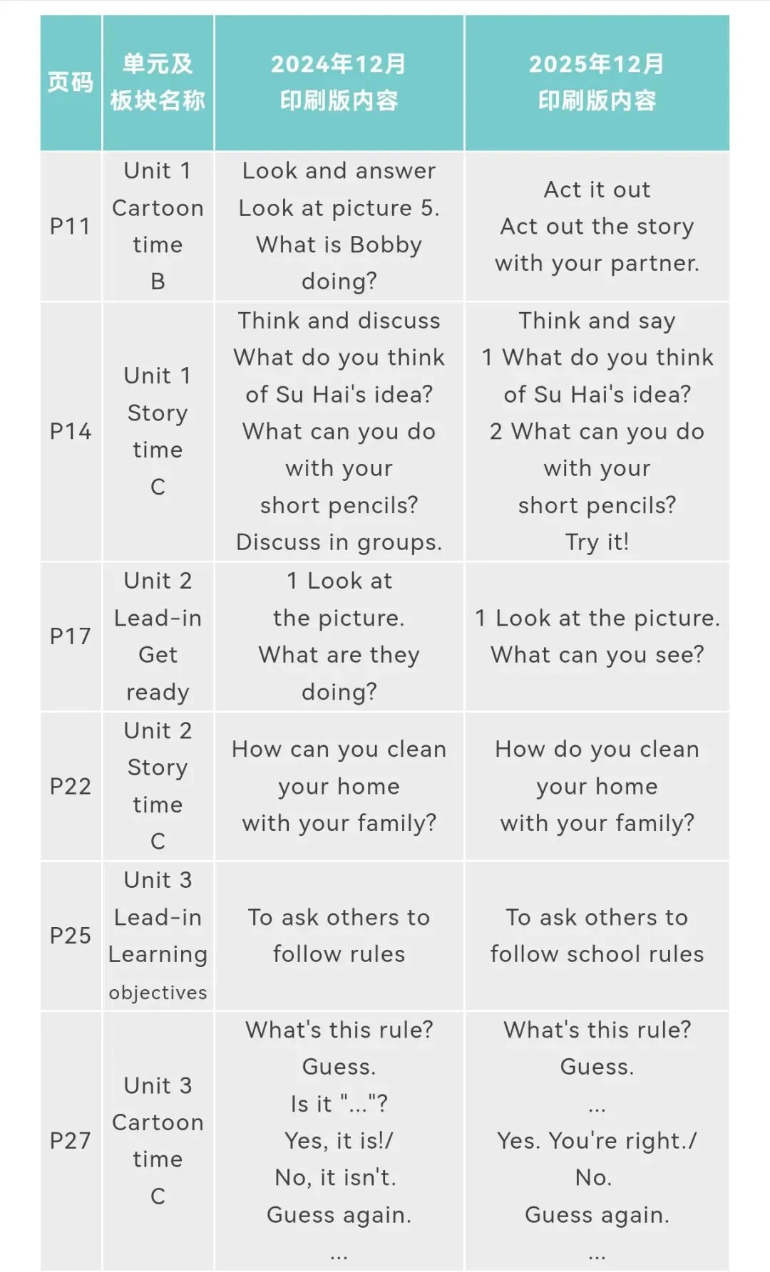 新版译林小学英语三下教材:2024.12与2025.12印刷版变化梳理