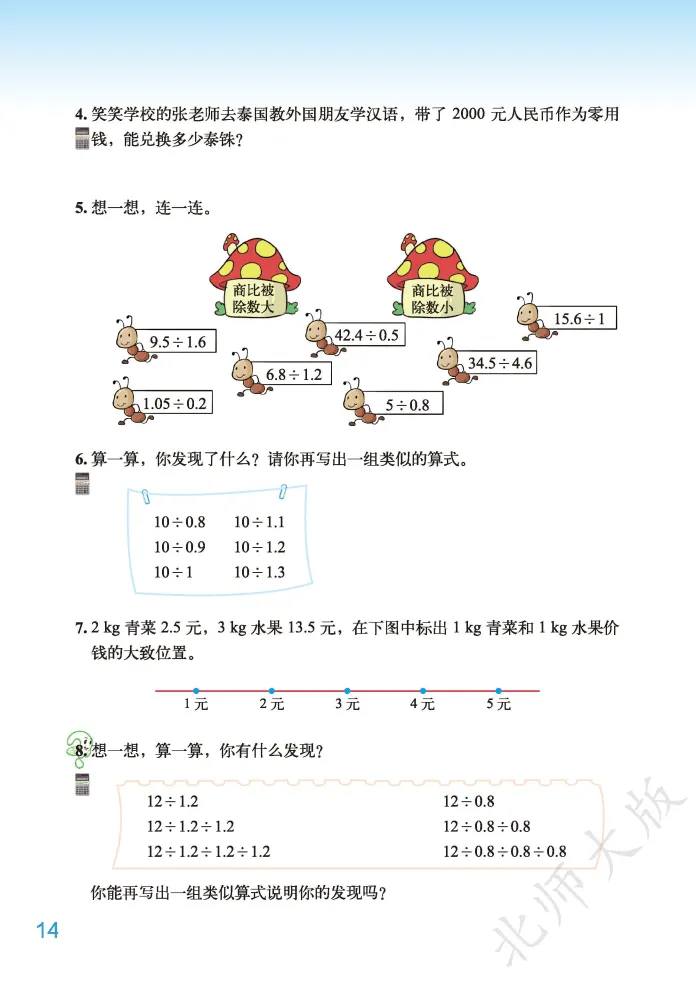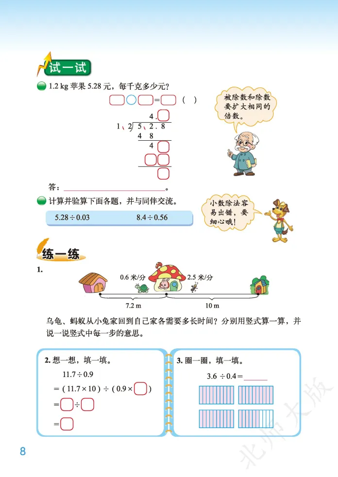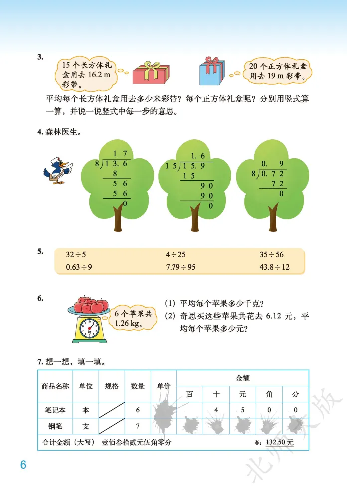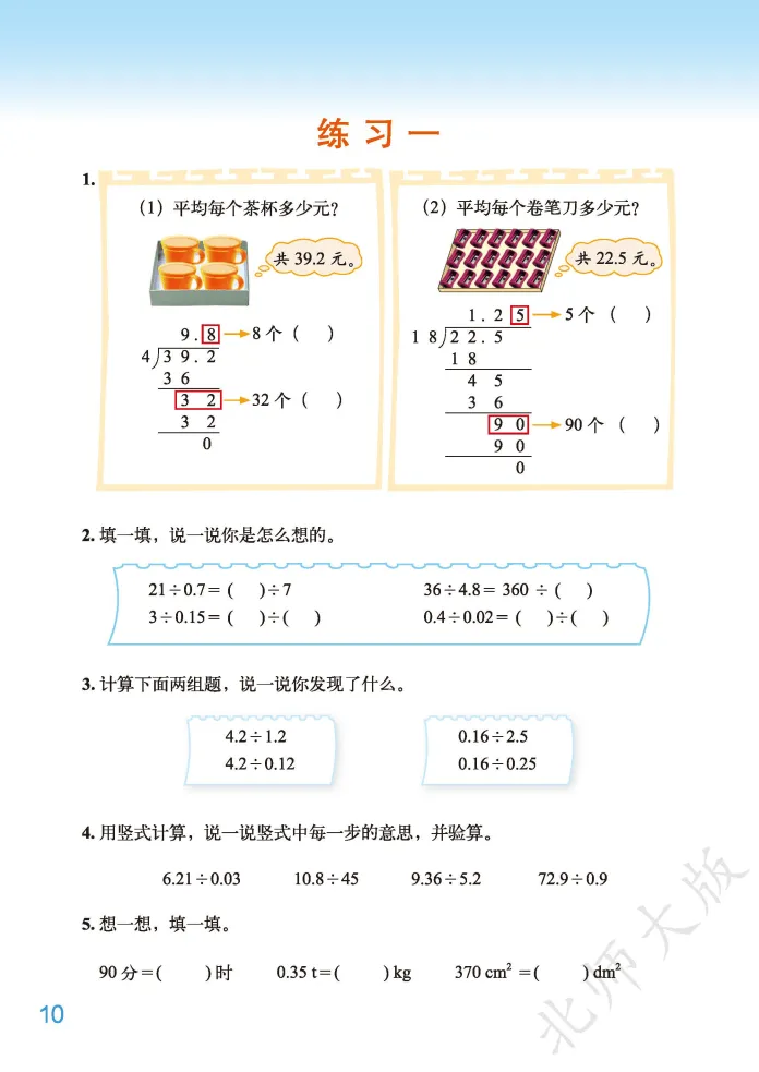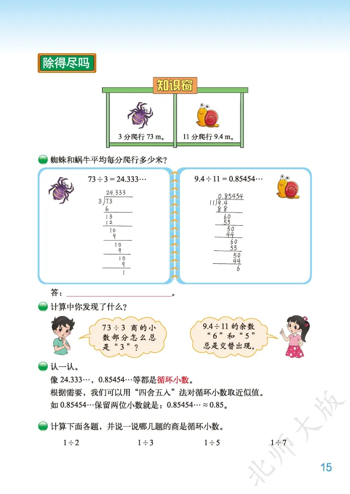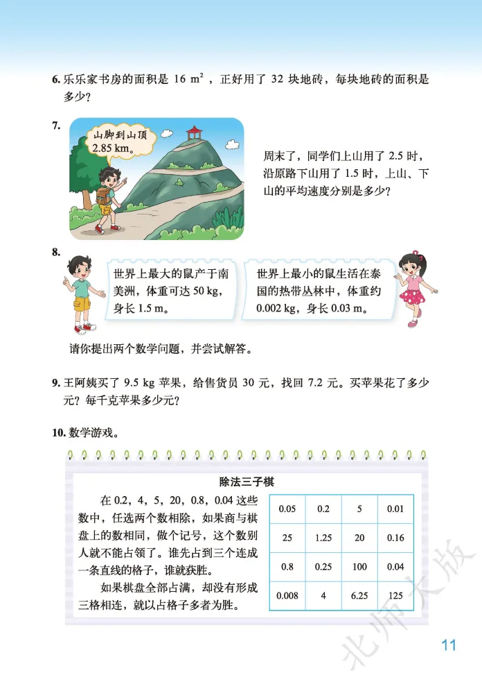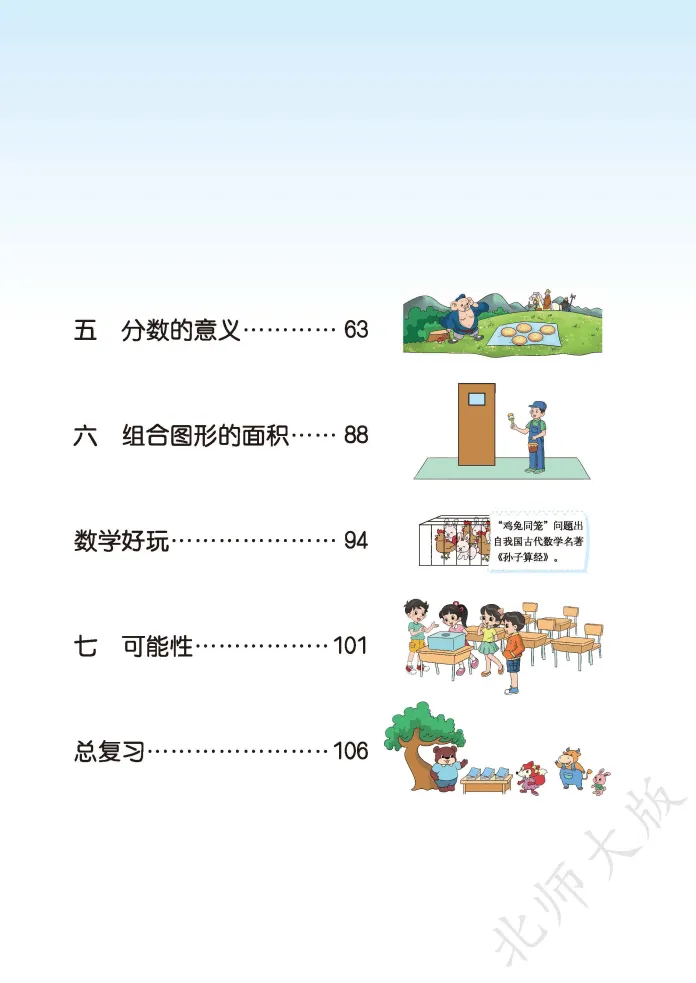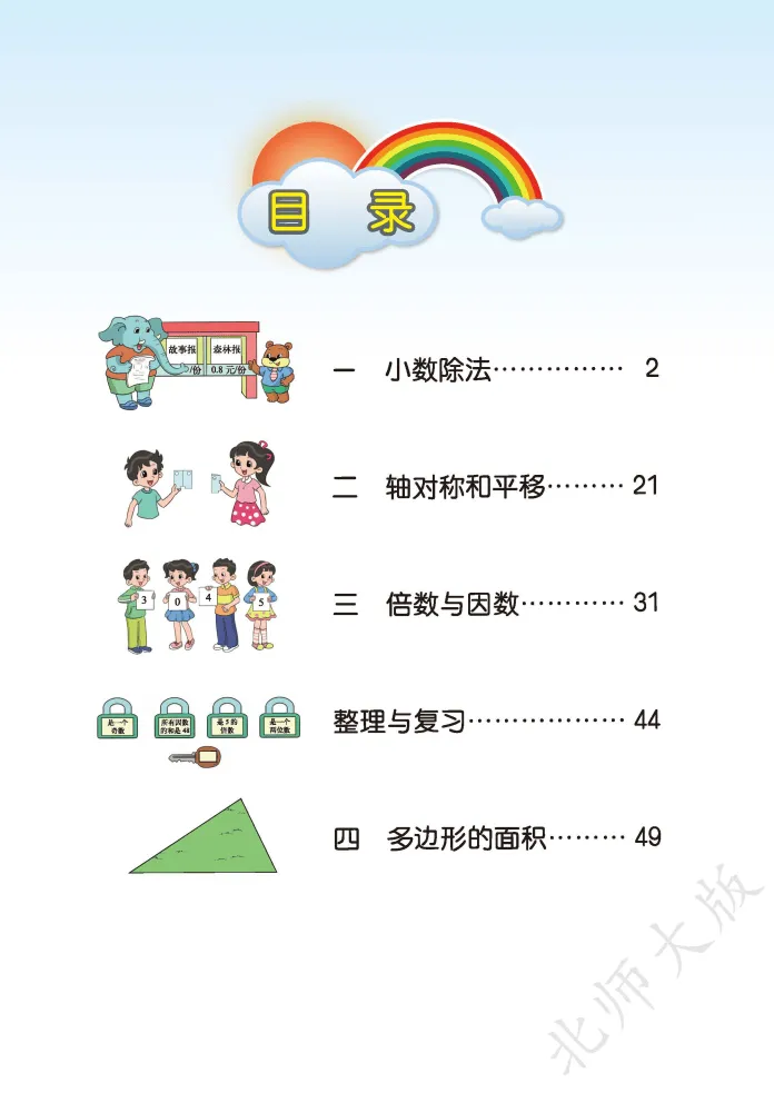 2026 秋北师大版五年级数学上册新教材,重点包含小数除法、轴对称和平移、倍数与因数、多边形面积、分数意义、组合图形面积、可能性,重小数除法计算、图形面积公式、分数性质与因数倍数应用,适配全国北师大版使用区,适合预习、同步训练与家庭辅导。