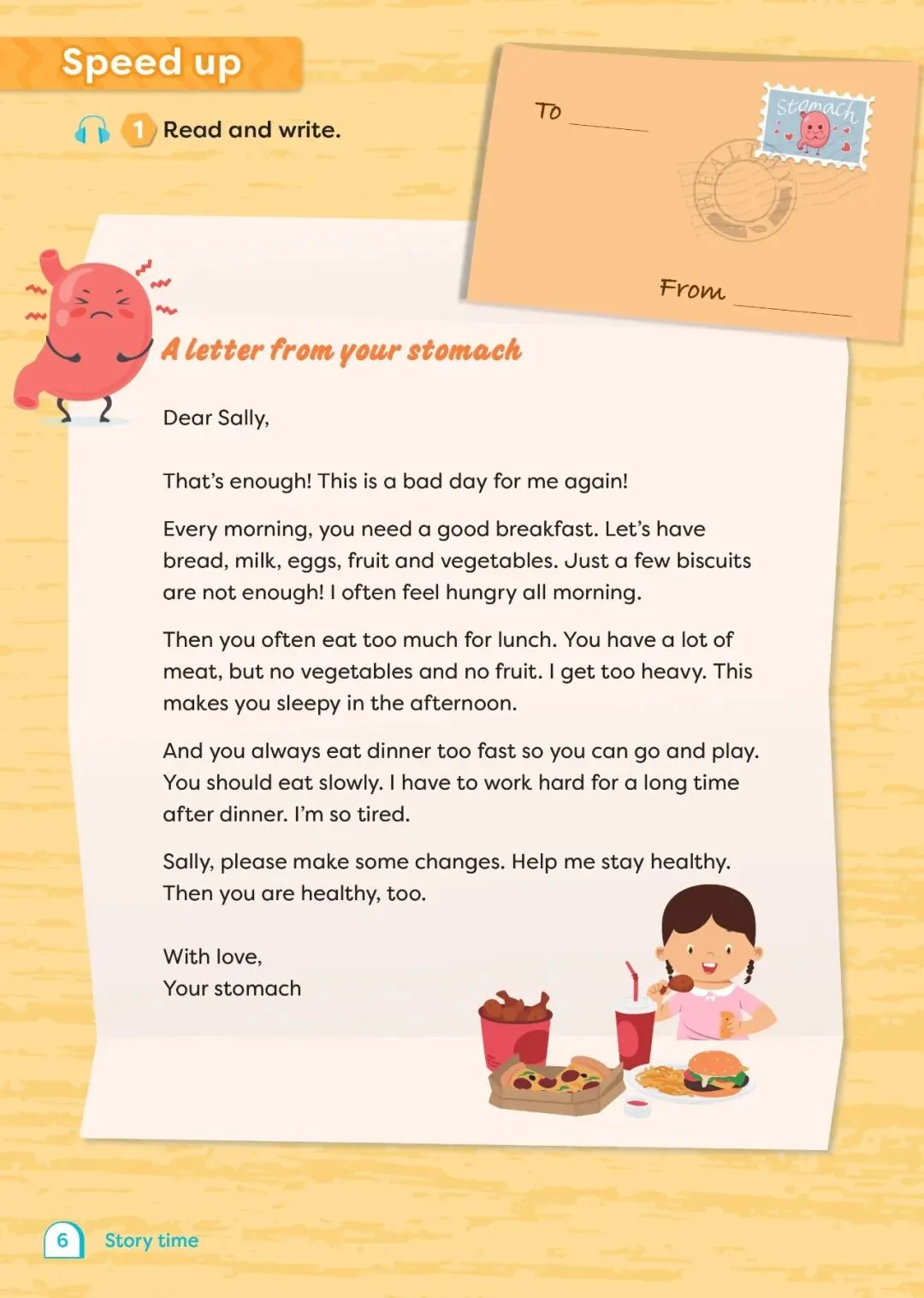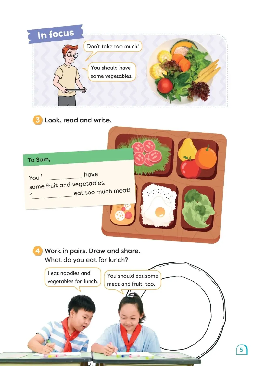 核心词汇与短语:掌握 plate, vegetable, fruit, meat, healthy, delicious, diet 等重点词汇;熟练运用 be good for, a lot of, take care of, have breakfast/lunch/dinner(基础 / 高频)