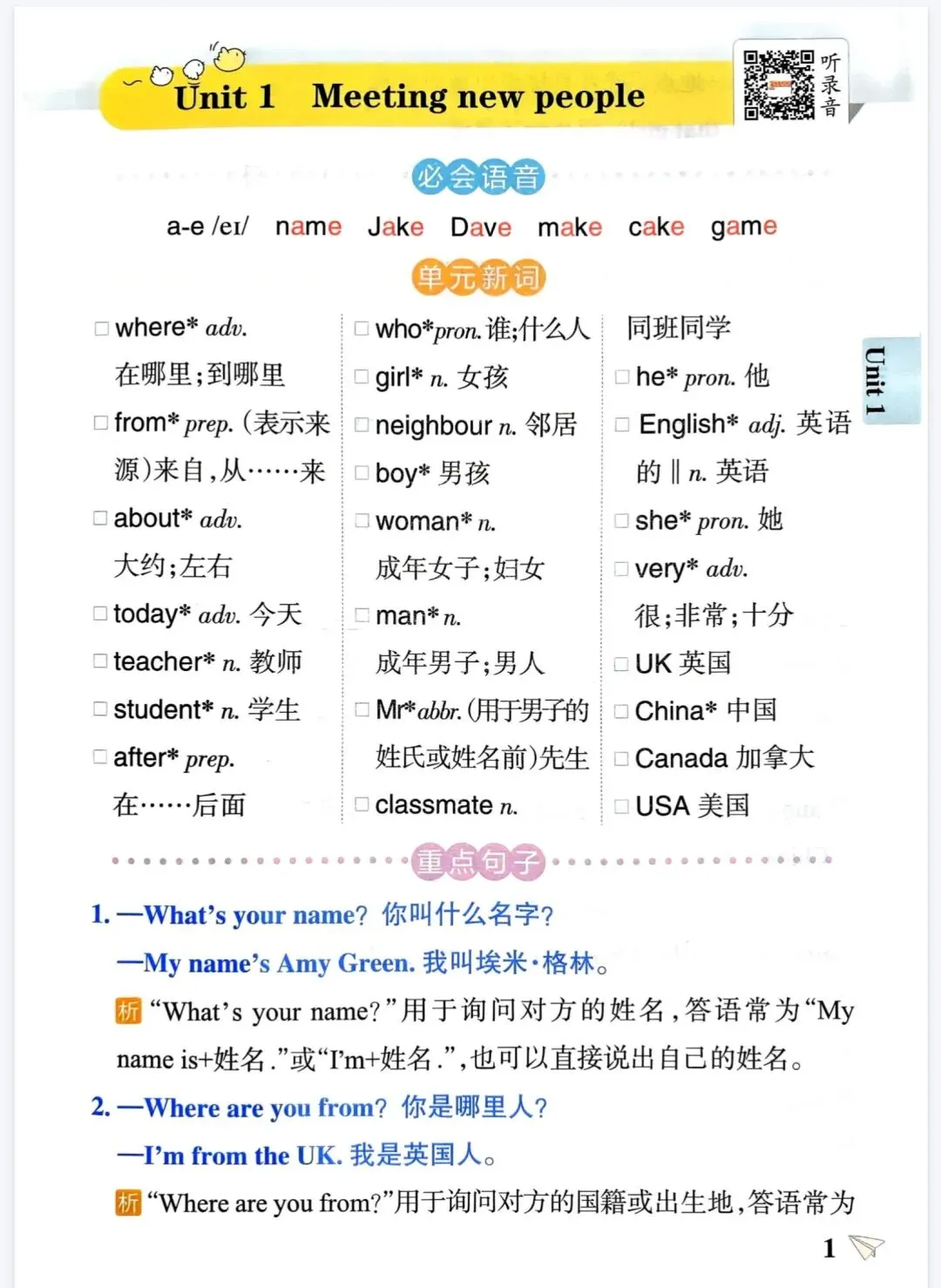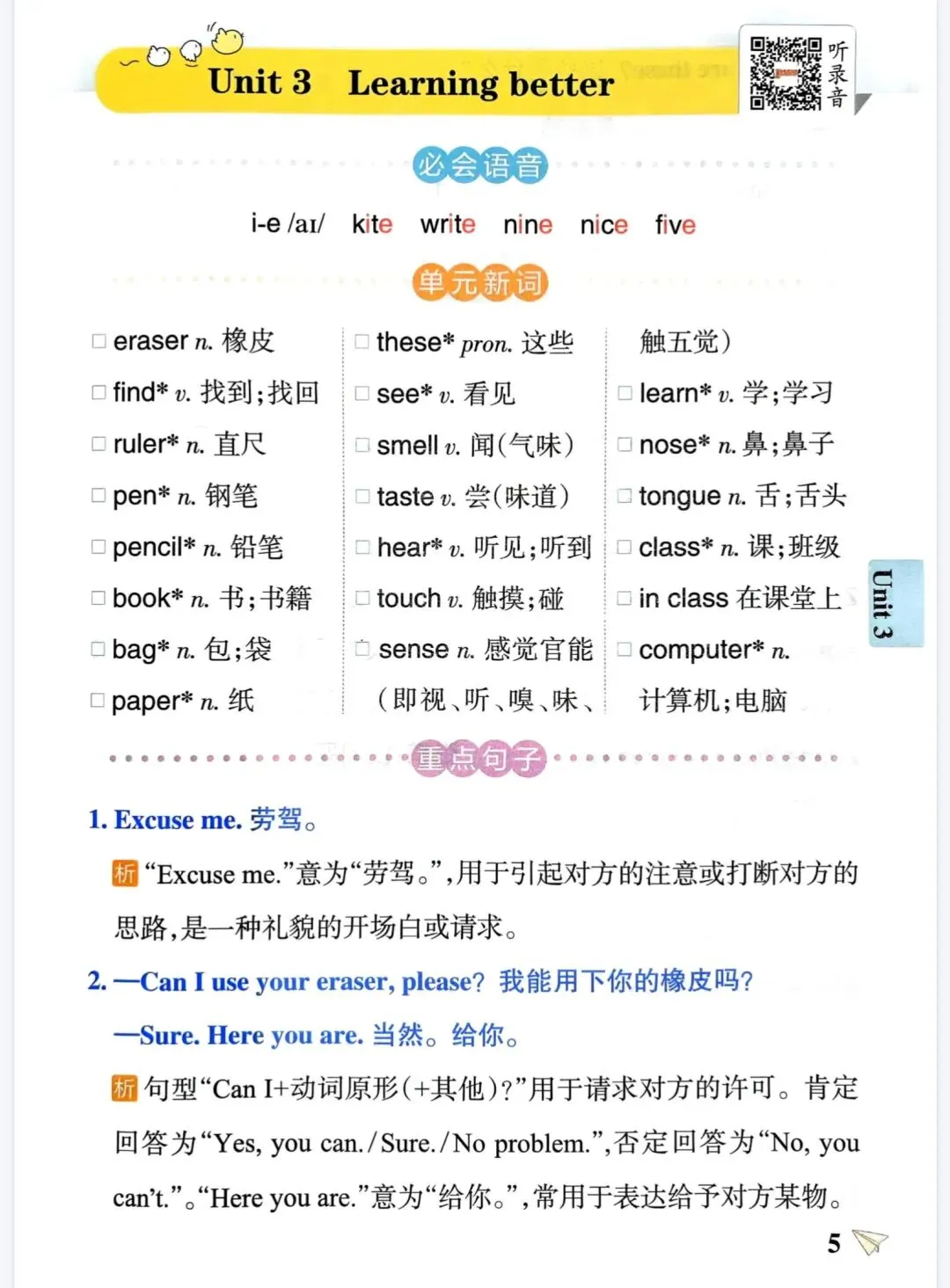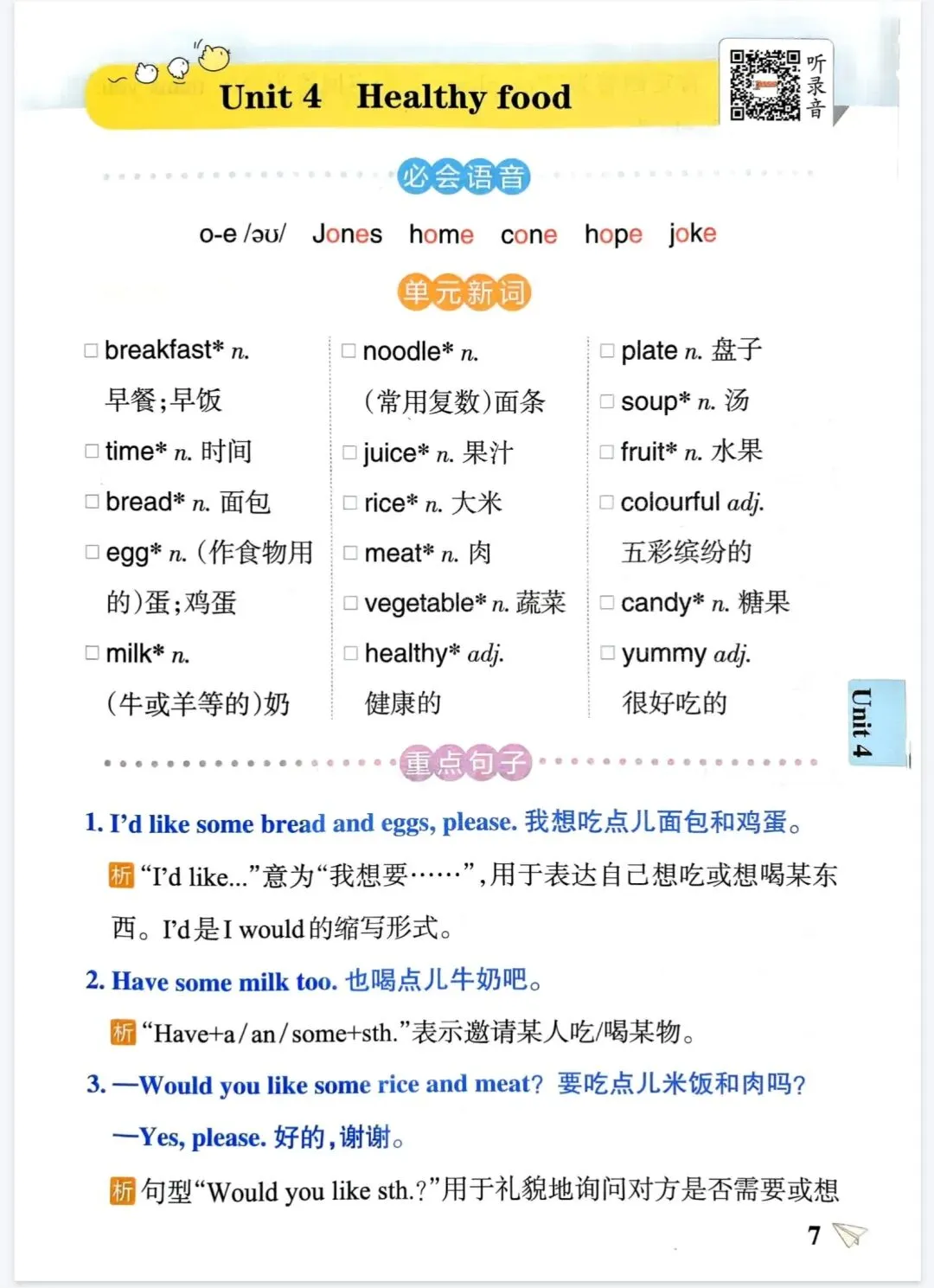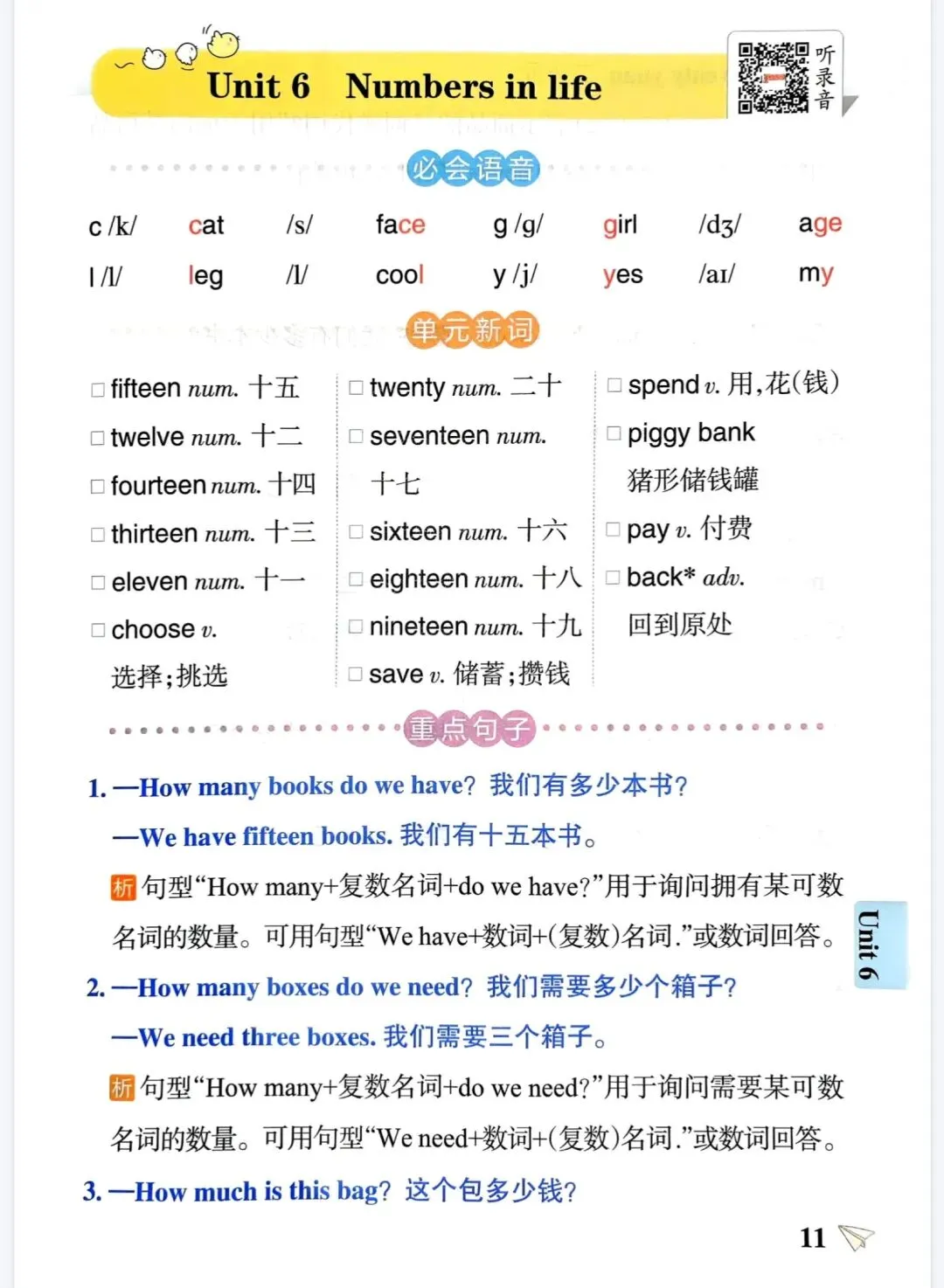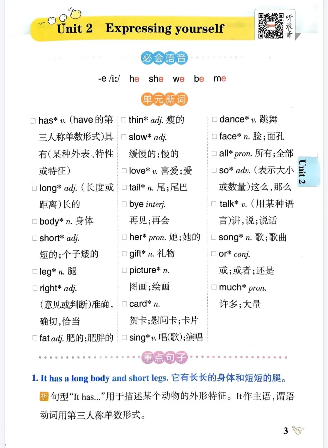 小学英语三年级下册课本单元知识点背诵(包含必会语音,单元新词,重点句子,课文对译)