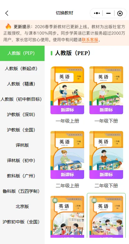 • 适配人教版(PEP/新起点/精通/新目标)、沪教版、北京版、江苏译林版、教科版广州、山西版、鲁科版等众多版本,2026春新教材正在陆续更新✅