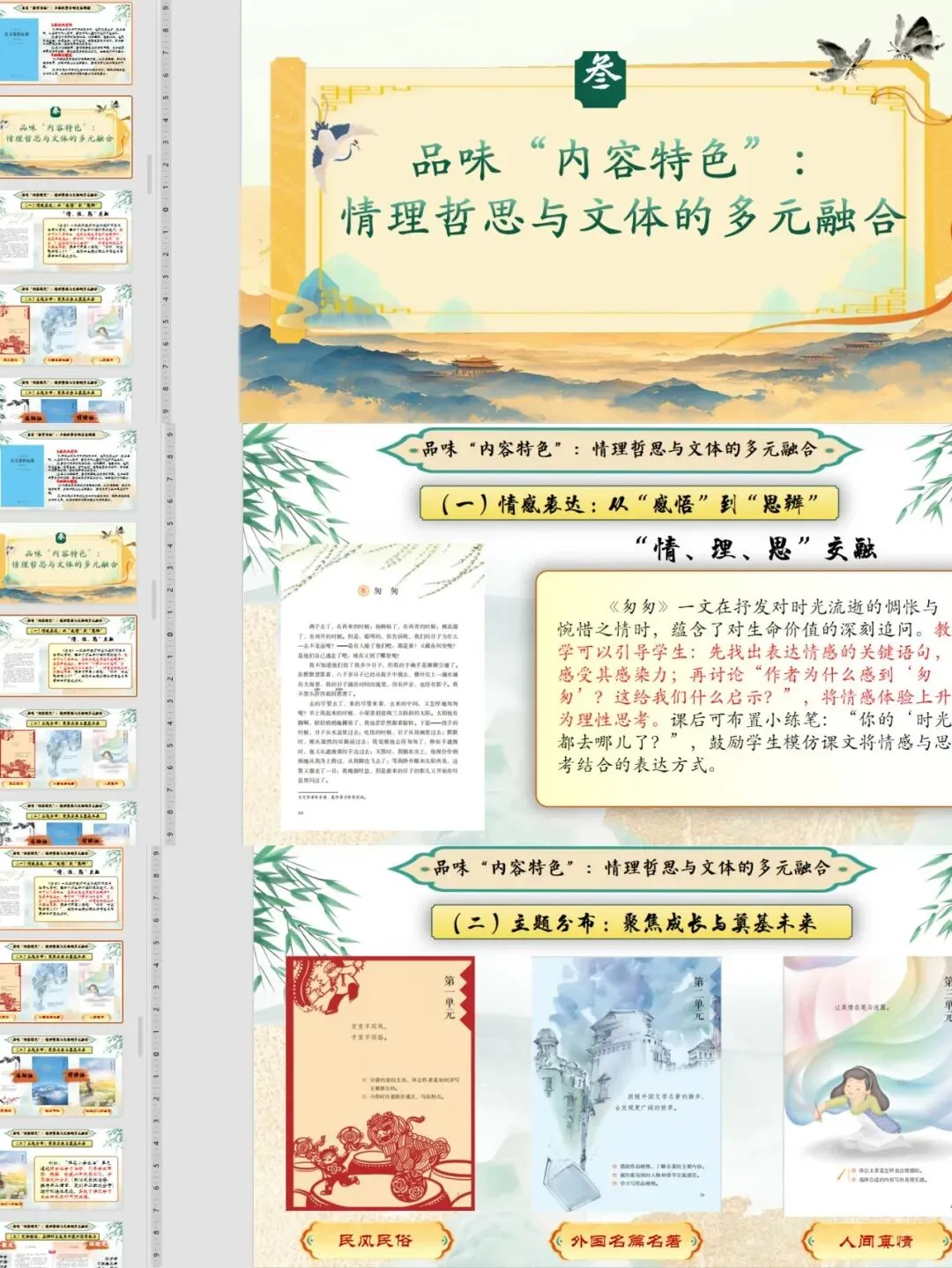 导语:综合学习的“启明星”。导语在明确双线目标的基础上,更加强调学习方法的综合与学习成果的形态。例如,第五单元“科学精神”的导语,不仅点明主题和要素,还提示学生“运用查找资料、对比阅读等方法进行探究,并尝试完成一份小型研究报告”,直接将学习引向综合性产出。