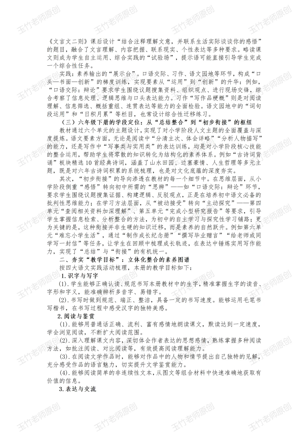 (三)六年级下册的学段定位:从“总结整合”到“初步衔接”的枢纽