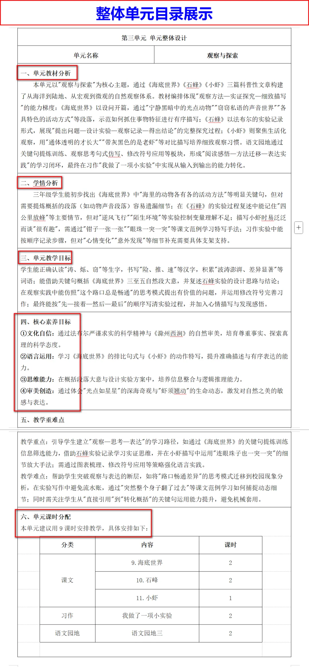 新教材部编小学语文#核心素养详细教案,表格版,有单元分析,可编辑,教学进度表,实用性大,可打印