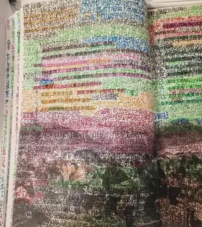 并非网友言辞犀利,实在是女生的笔记方式过于极端。预习、课堂、复习,她的课本上密密麻麻,几乎每句话都不放过,这种事无巨细的记录方式,不仅让课本面目全非,也让知识的重点变得模糊不清。