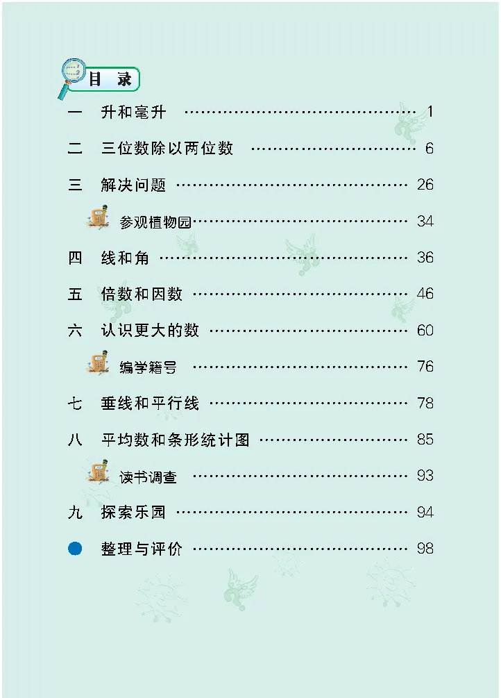 2026 秋冀教版四年级数学上册新教材,聚焦升和毫升、三位数除以两位数、倍数因数、垂线平行线、大数认识等核心内容,融合实践操作与生活情境,强化数感、空间观念与运算能力培养,搭配探索乐园拓展思维,是河北及冀教版使用区四年级上学期夯实数学基础、提升综合应用能力的核心教材。