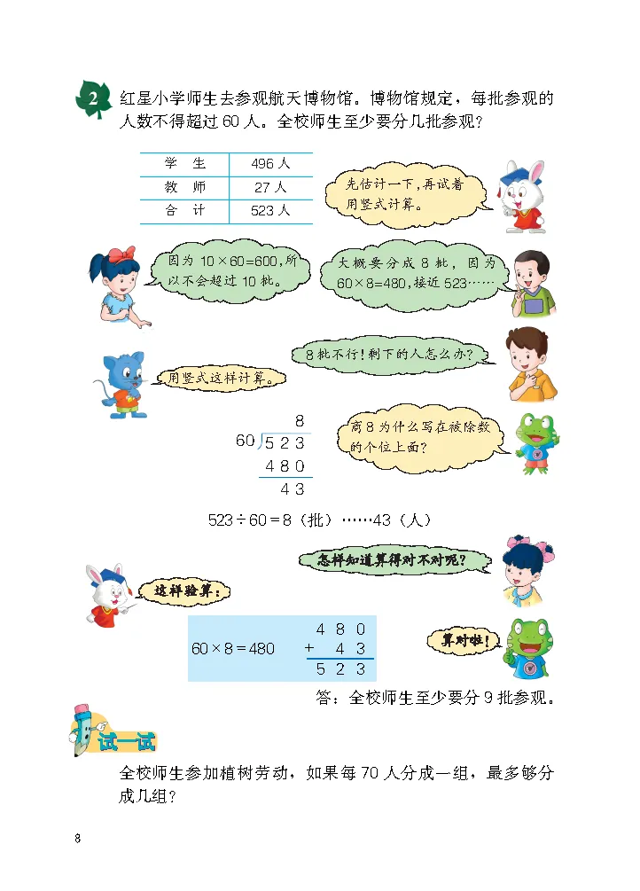 ,然后发送 电子课本 2026秋冀教版四年级数学上册第五单元核心主题为“倍数和因数”,是小学阶段“数与代数”领域数论知识的启蒙核心单元,承接前序整数的认识、多位数乘除法的基础,重点培养学生的倍数与因数认知能力、奇偶性判断能力、质数与合数辨析能力,既是对整数运算知识的延伸拓展,也为后续学习最大公因数、最小公倍数及分数的约分、通分奠定关键基础,更是培养学生数感和逻辑推理意识的重要载体。教材延续冀教版“情境化、生活化、重探究”的编排特色,以“数的世界”为导入情境,结合整数乘法算式展开知识点探究[2],贴合四年级学生抽象思维快速发展的认知特点,采用“概念探究—特征辨析—方法总结—应用拓展”的递进编排逻辑,分步拆解核心知识点,规避复杂理论讲解,注重基础应用,清晰标注中年级学生易混淆、易出错的细节,搭配小组讨论、举例验证等探究活动,方便孩子在自主探究中理解概念内涵,也为家长针对性辅导、助力孩子夯实数论基础提供明确方向。本单元核心知识点围绕四大模块展开,贴合中年级学生认知节奏,兼顾基础性、逻辑性和实用性:一是倍数和因数的认识,理解核心定义——在非0自然数的乘法算式中,两个乘数是积的因数,积是两个乘数的倍数[2],明确倍数和因数是相互依存的,不能单独说某个数是倍数或因数(如不能说“6是倍数”,应说“6是2和3的倍数”);能根据乘法算式或除法算式,找出一个数的所有因数,掌握找因数的方法(成对有序查找,避免遗漏),能找出一个数在指定范围内的倍数(如找出100以内8的倍数)。二是2、5、3的倍数特征,这是本单元的重点难点,牢记核心特征:个位上是0、2、4、6、8的数是2的倍数;个位上是0或5的数是5的倍数;一个数各位上的数字之和是3的倍数,这个数就是3的倍数[2];能结合特征快速判断一个数是否是2、5、3的倍数,能找出同时是2和5、2和3、3和5的倍数的数(如同时是2和5的倍数,个位一定是0)。三是奇数和偶数的认识,理解奇数和偶数的定义——是2的倍数的数叫做偶数(0也是偶数),不是2的倍数的数叫做奇数[2];能准确区分奇数和偶数,掌握奇数、偶数的简单运算性质(如奇数+奇数=偶数、偶数+偶数=偶数),能结合生活场景判断奇数、偶数的应用。四是质数和合数的认识,理解核心定义——一个数只有1和它本身两个因数,这样的数叫做质数(也叫素数);一个数除了1和它本身,还有其他因数,这样的数叫做合数[2];牢记1既不是质数也不是合数,能区分质数与合数,能找出100以内的质数(重点掌握20以内的质数:2、3、5、7、11、13、17、19),能结合质数、合数的特征解决简单的辨析问题。本单元四大高频易错点需重点规避:一是混淆倍数和因数的依存关系,单独表述某个数是倍数或因数;二是判断3的倍数时,误看个位数字,忽略“各位数字之和是3的倍数”的核心特征[2];三是混淆质数与合数的定义,误将1当作质数,或把合数当作质数;四是找一个数的因数时,出现遗漏或重复的情况,未按有序成对的方法查找。
