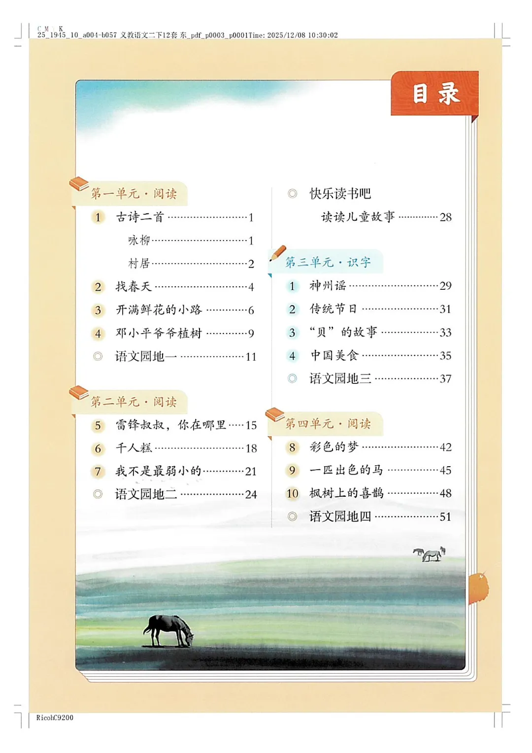 【预习】2026春小学人教版语文二年级下册电子课本(高清PDF电子版,免费下载)