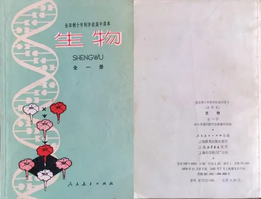 全日制十年制学校高中课本《生物》(全一册)该书由人民教育出版社出版发行,1978年11月第一次印刷,作为试用本在全国使用,后续改编,至1982年秋季,该书被改编为正式课本。