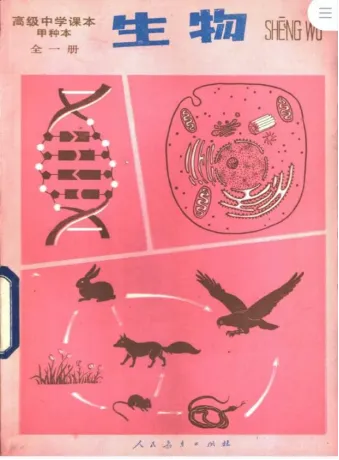 高级中学课本《生物》(甲种本、全一册)该书是在1982年人民教育出版社中学生物编辑室编写的《高级中学课本生物(全一册)》的基础上,按照教育部颁发的《高中生物教学纲要(草案)》的较高要求内容改编而成的。在改编时还吸收了几年来各地在使用原课本中提出的许多宝贵意见.